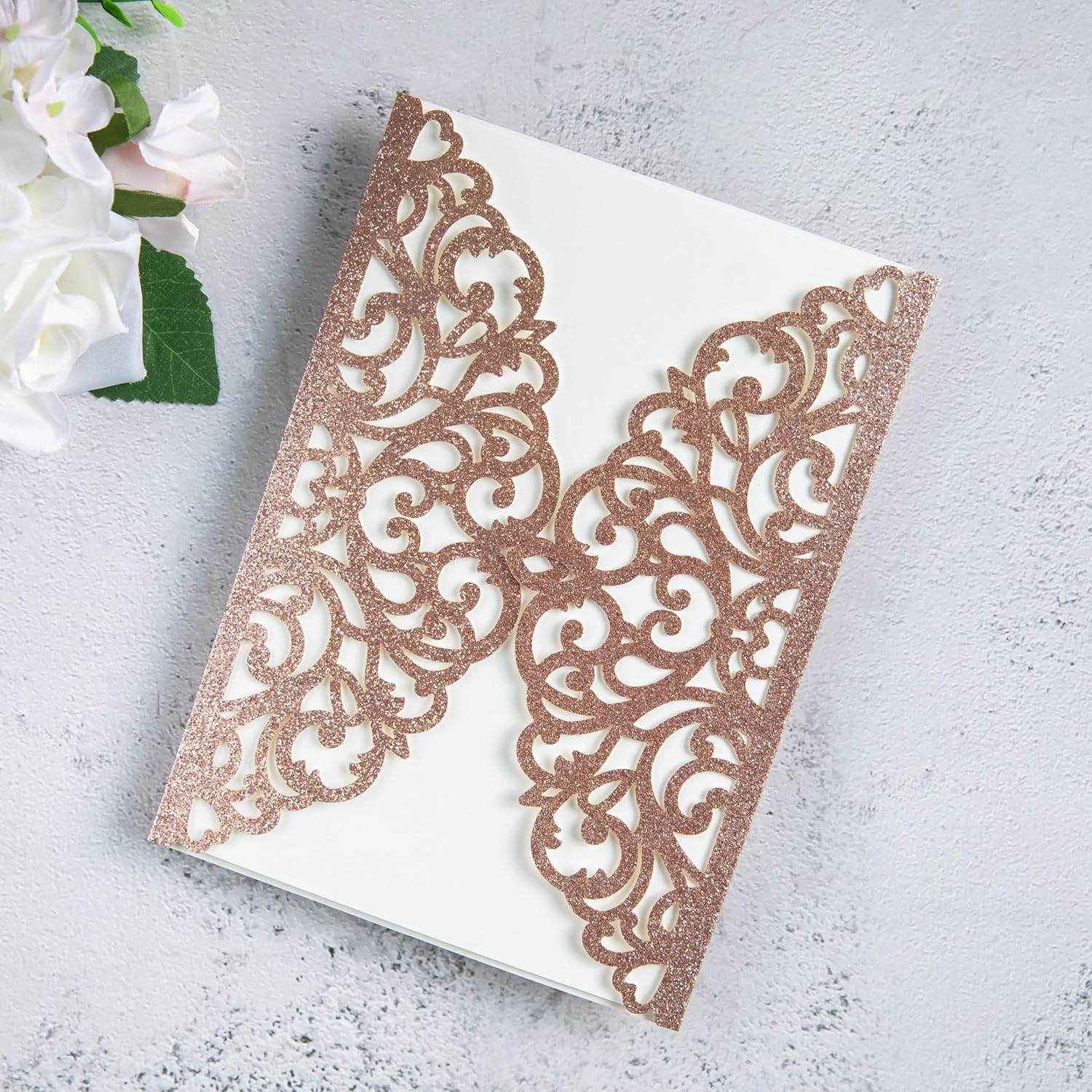 20Pcs Rose Gold Glitter Laser Cut Invitation Cards With Blank Inner Sheets for Wedding Cards Bridal Shower Engagement Quinceanera Invitation (No Envelopes)