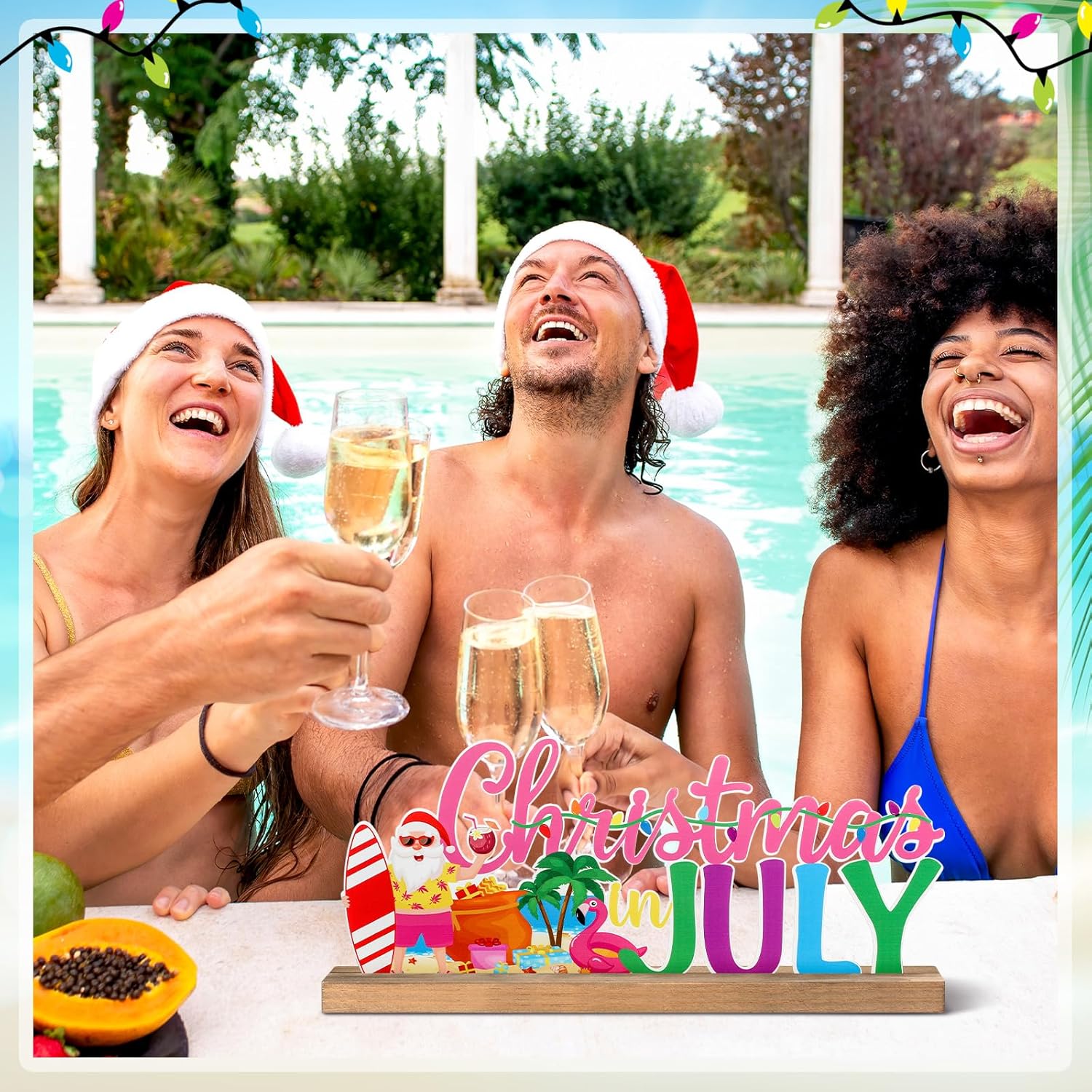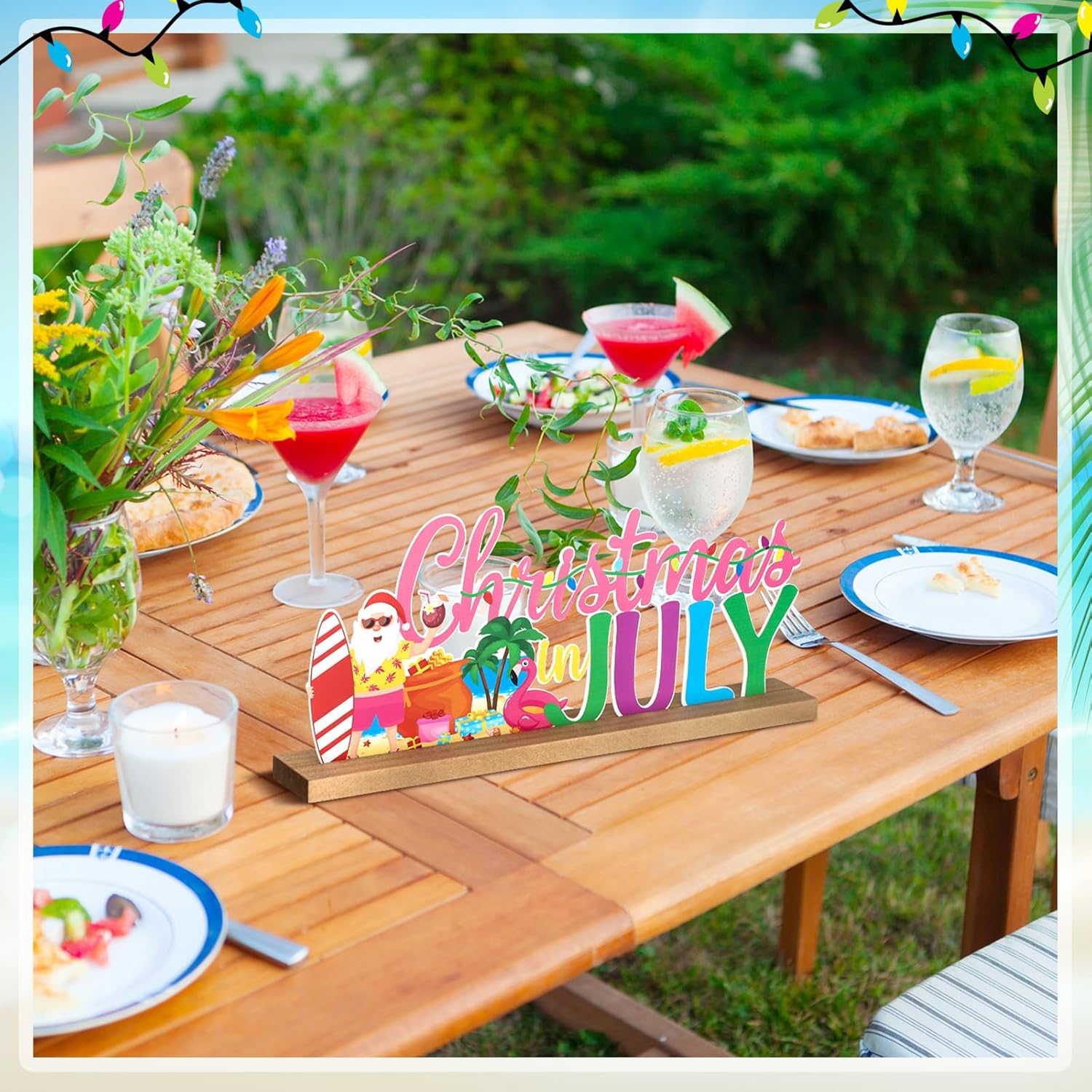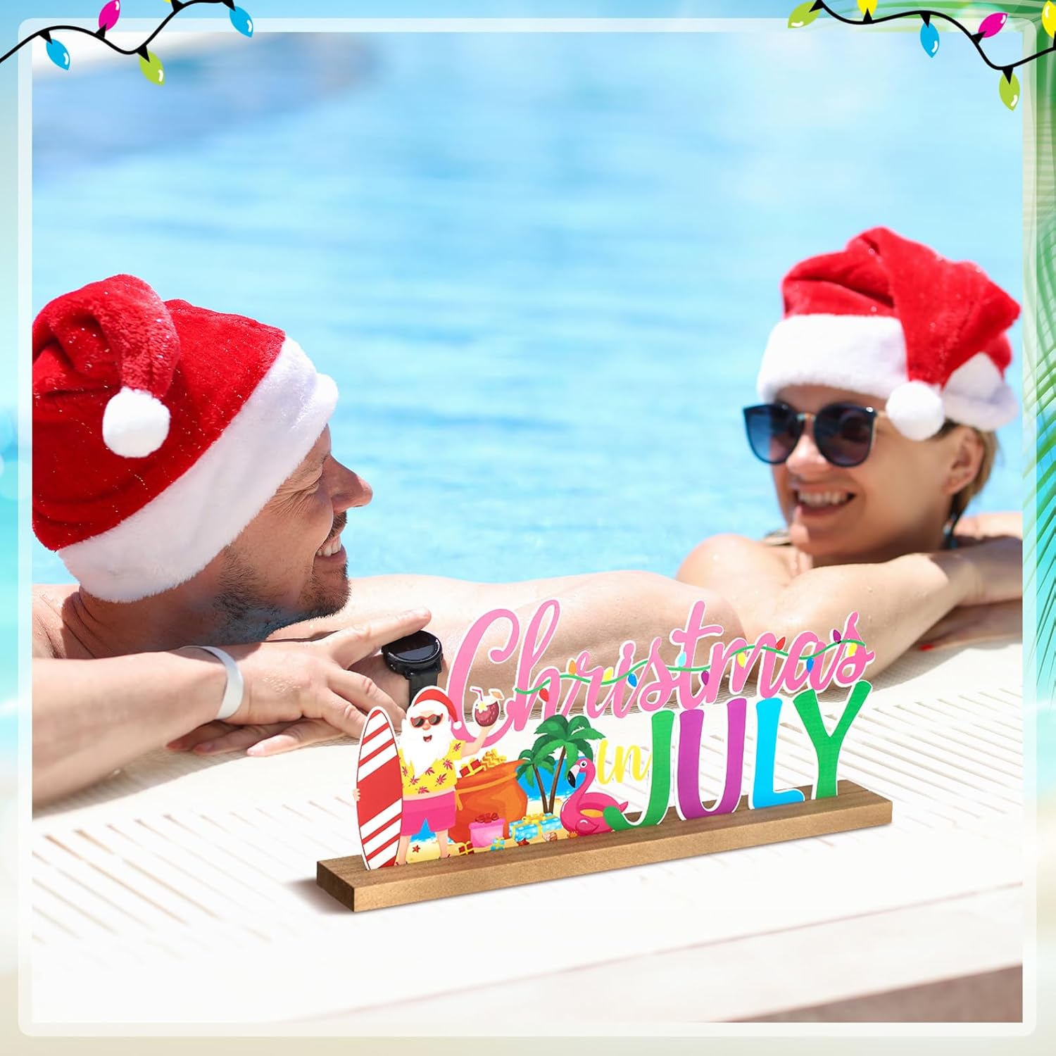 - Christmas in July Themed Design: our July Summer tabletop word sign designed with vivid metal wording and a solid wooden base; The sign is also decorated with hearts, making it an eye catching decoration for your celebration