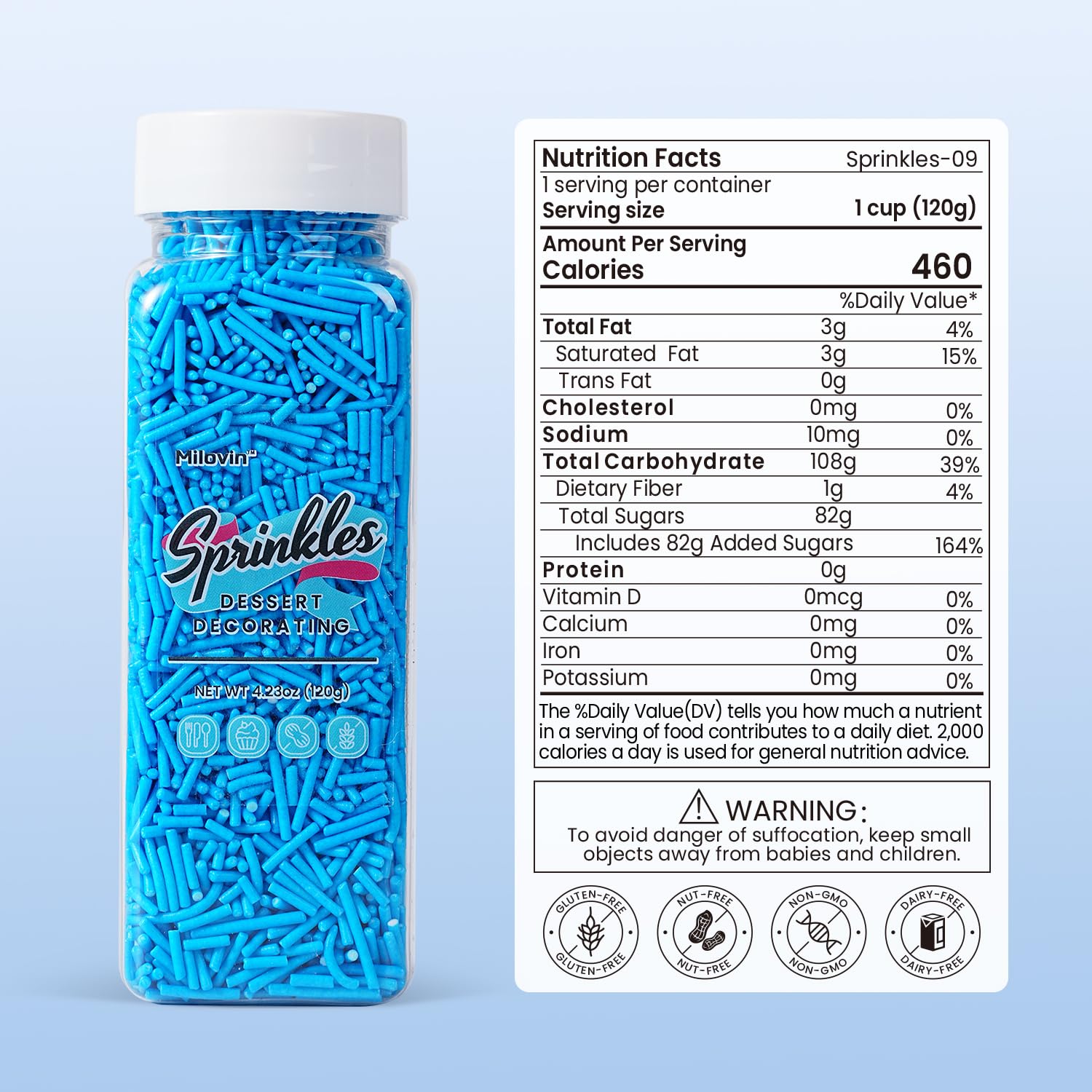 - Blue Jimmies Sprinkles: A bottle of edible blue sprinkles(120g/4.23oz), whether it's cakes, cupcakes, cookies, ice cream, cake pops, brownies, or any dessert you can dream of; our jimmies are your go-to for that extra dash