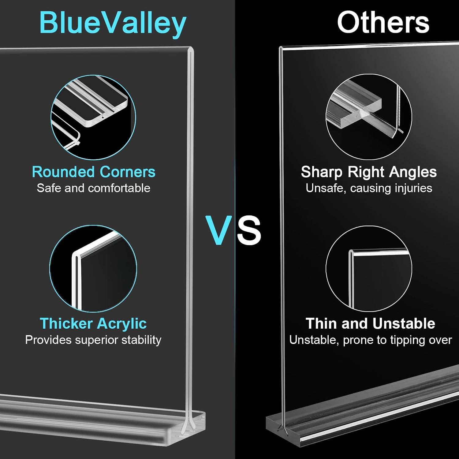 - 【Crystal Clear, Durable Acrylic Material】Crafted from crystal-clear acrylic, this display stand offers the elegance of glass with enhanced safety and durability. Shatterproof and scratch-resistant, it won’t yellow or crack—perfect for long-term display of photos, flyers, documents, or signage in home or business settings.