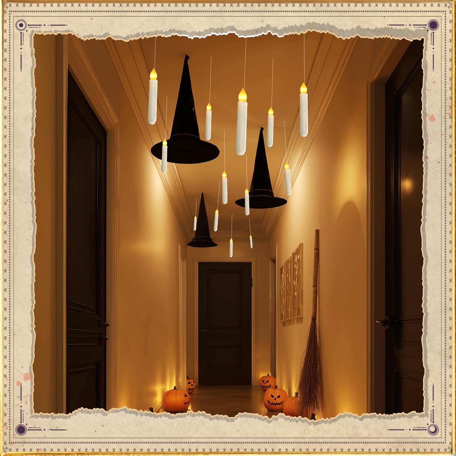 - Never received a letter from magic school? but it doesn't matter! You will receive 20 pcs hanging floating candles, an easy hanging kit with 2 wand remote range of 45 ft/10 meters which can switch these flickering flameless taper candles on and off simultaneously just like magic. Set these candles in your house, and with just one click, together with some spells and movements, you are a witch!