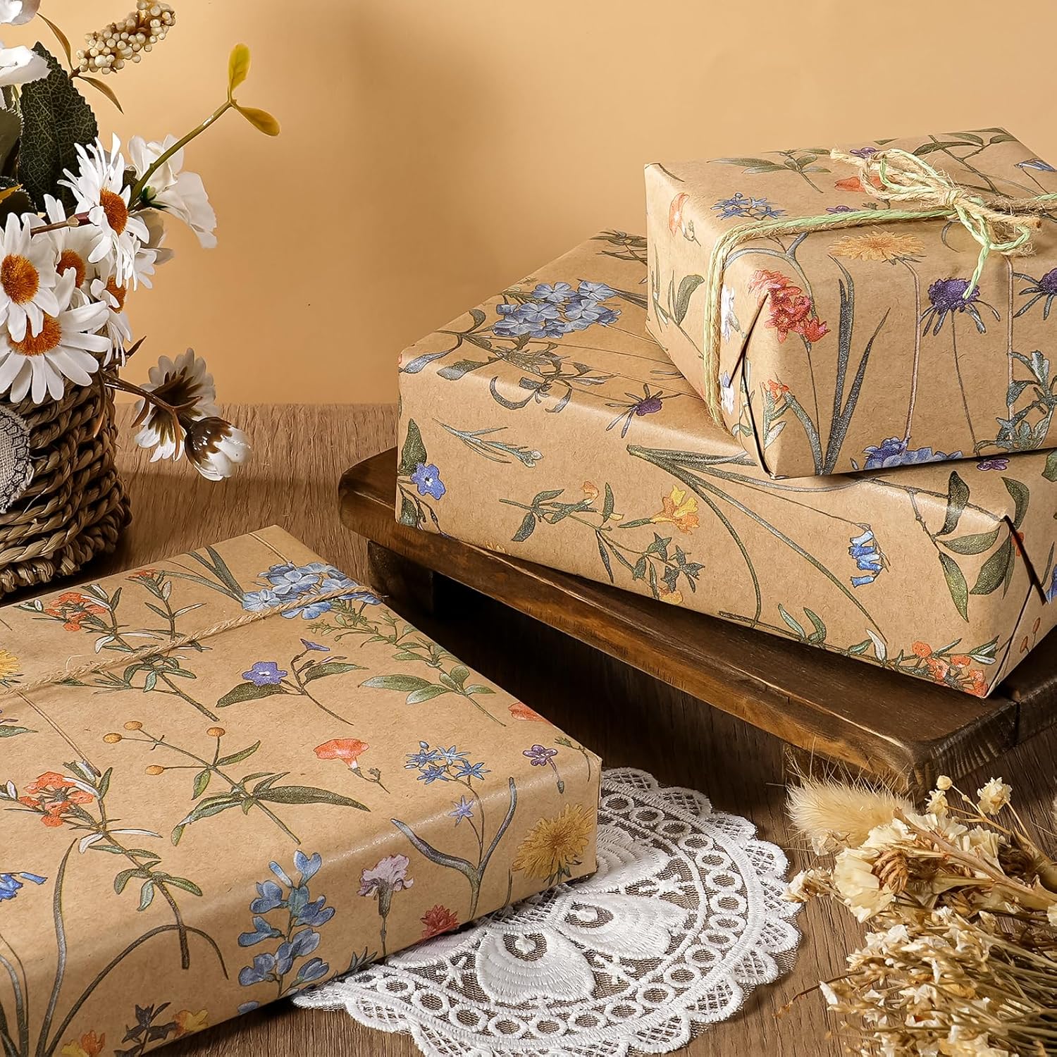 - Kraft Floral Design: Kraft garden wildflower floral wrapping paper design, will make your gift exudes charm and elegance. The flower wrapping paper make it ideal for creating a wonderful gift presentation that leaves a lasting impression.