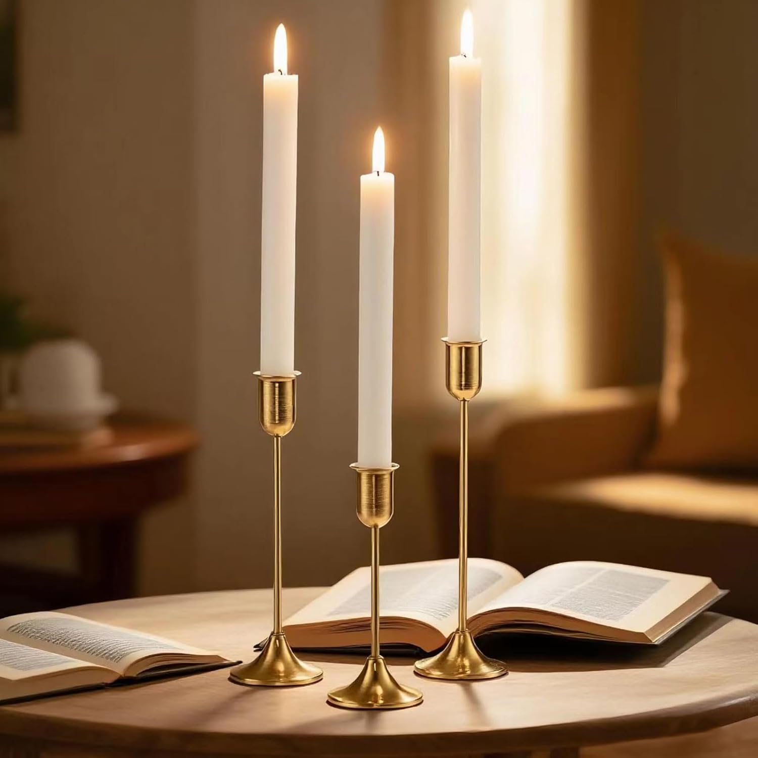 - ✅ Elegant 6-Piece Set: Set of 6 gold taper candle holders made from durable matte metal, designed to hold standard taper candles. Perfect for adding a modern, elegant touch to dining tables, mantels, coffee tables, weddings, dinner parties, or home decor settings. This gold candle holders set is suitable for candle sticks and taper candles, each one can fit 3/4 inch and 7/8 inch small candles as well as LED cone candles to match your dining table decor.