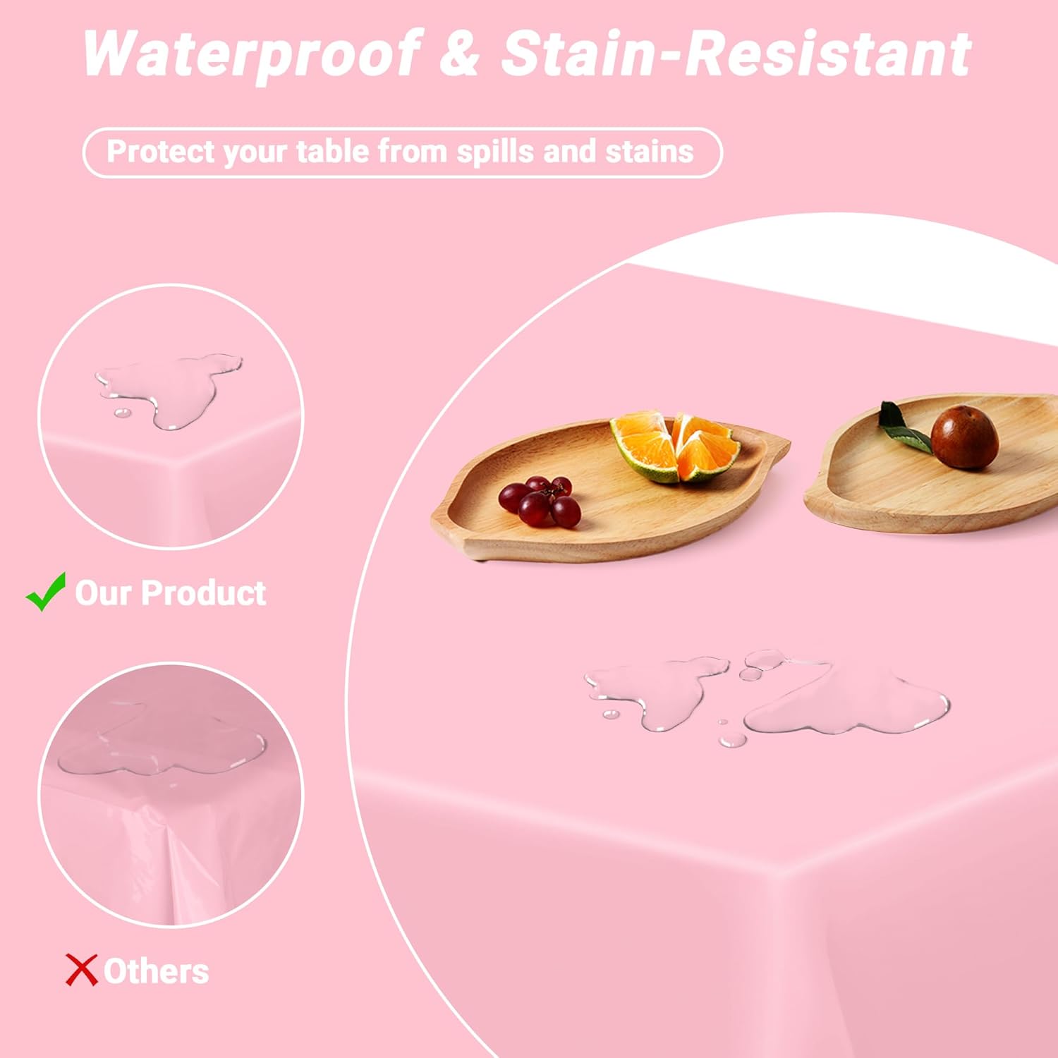 - Diverse Applications: Covers any table with minimal transparency. The pink plastic table cloth rectangle table is great for parties, weddings, thanksgiving, Christmas, Outdoor events.