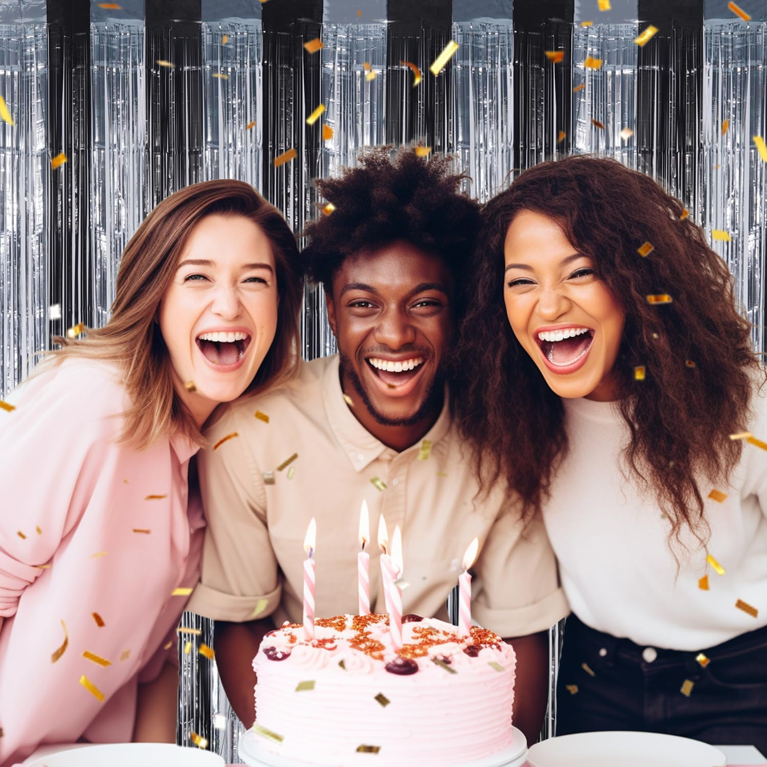 - 【Versatile Party Decoration】Use this foil fringe backdrop to add a touch of elegance to any event, from birthdays to weddings, baby showers, Christmas, Halloween, Graduations, and more. Pair with LED lights and other party decor to create a unique and memorable atmosphere.