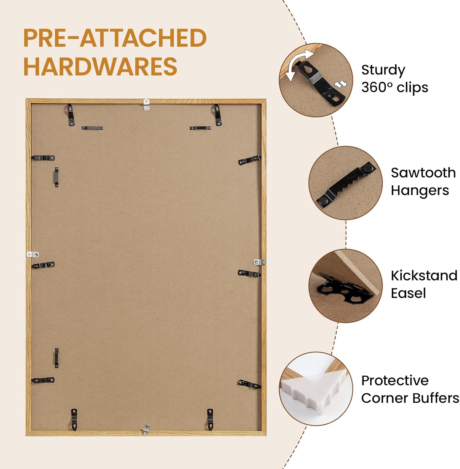 - 【Horizontal & Vertical Display】 The 19 x 27 wall picture frames has 2-side hanging hooks,You can wall mouted the frame in Horizontal & Vertical to decor your house pretty.With the rotating tab,you can more easily remove the back - panel and put in photos, keep your art securely in place.
