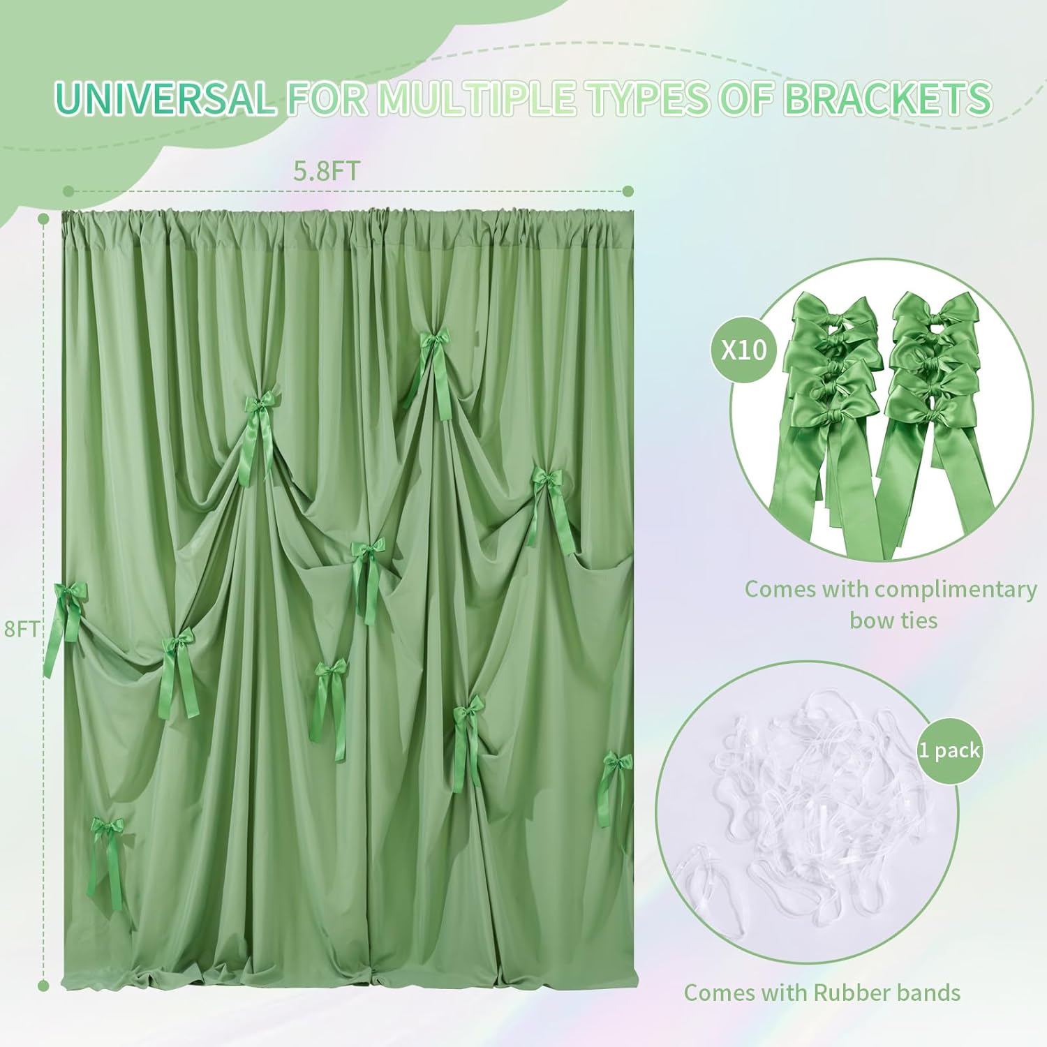 - 【Package Includes】: Included a panel 5.8x8ft polyester background, 10 double - sided satin bows and a pack of rubber bands, let you DIY your own unique decoration!