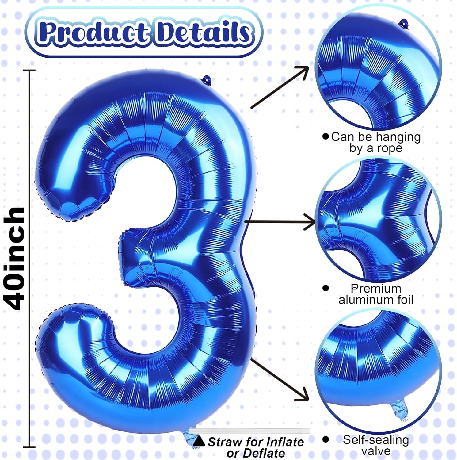 - Navy Blue Number 3 Balloon 40 Inch: Includes 1pc 3 balloon and a straw for easy inflation and deflation. This helium balloon is perfect for birthdays, anniversaries, or special occasions like a 3rd, 13th, 30th, or 35th celebration