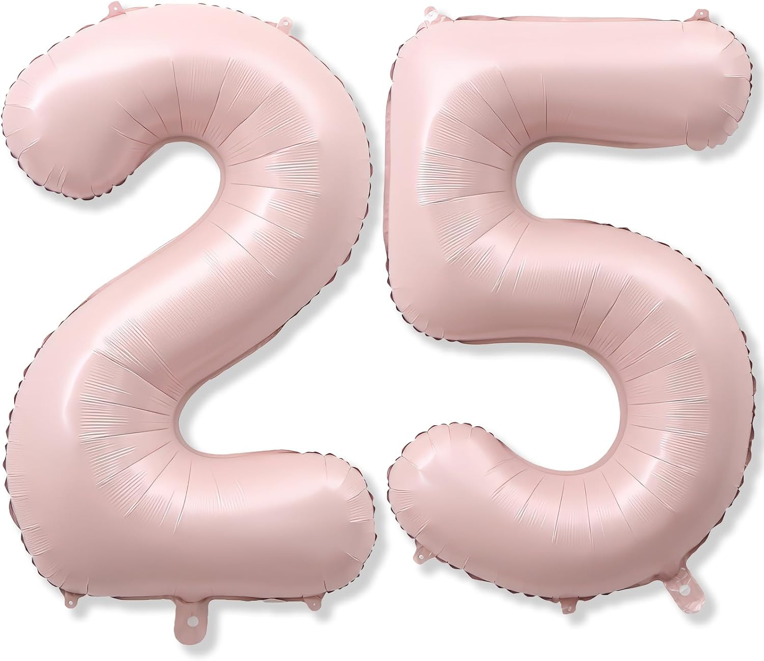 - Large Size & Reusable: Our blush pink 40" mylar number 25 balloon is crafted from high-quality aluminum foil, ensuring long-lasting use. Safe, non-toxic, and reusable. The retro pink number foil balloons are perfect for birthdays, anniversaries, and special events. Simply fill the foil balloons to 98% capacity for full expansion