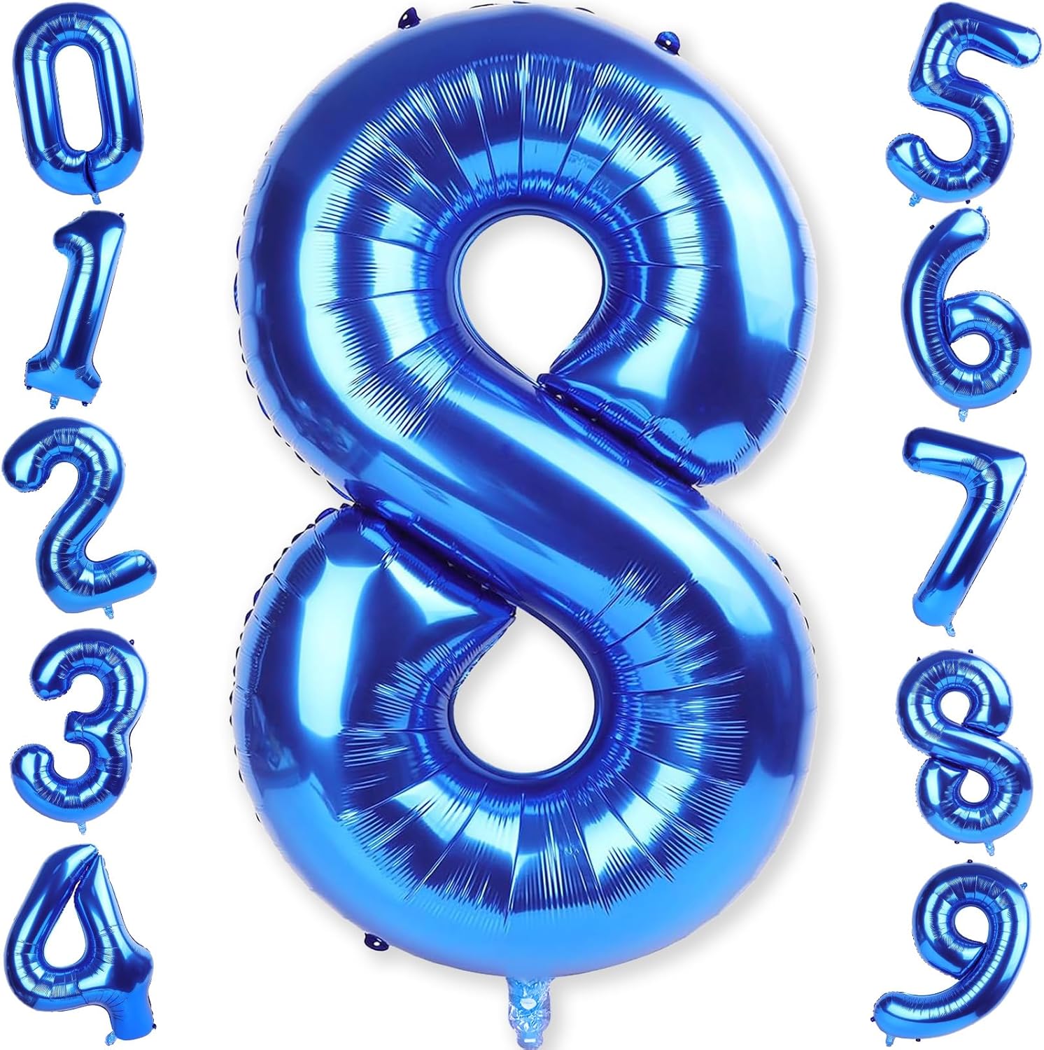 - Navy Blue Number 8 Balloon 40 Inch: Includes 1pc 8 balloon and a straw for easy inflation and deflation. This helium balloon is perfect for birthdays, anniversaries, or special occasions like a 8th, 18th, 28th, or 80th celebration