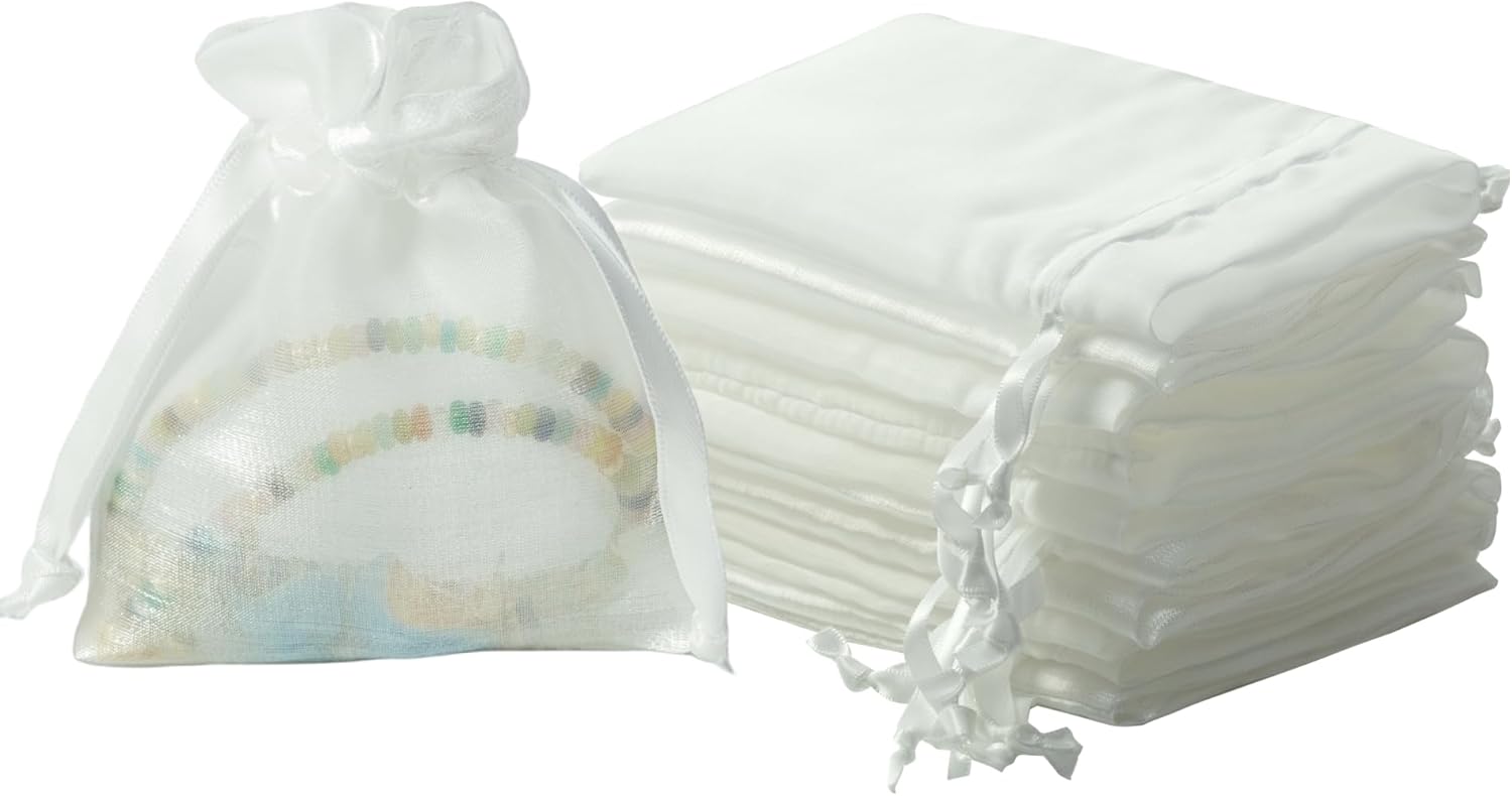 - SIZE: These tiny drawstring mesh pouches combine functionality with elegance, the sheer organza fabric beautifully displays contents while securely holding. Measuring 3" x 4" (7.6 x 10cm), package include 20pcs reusable organza bags. Measure your items before choosing sizes
