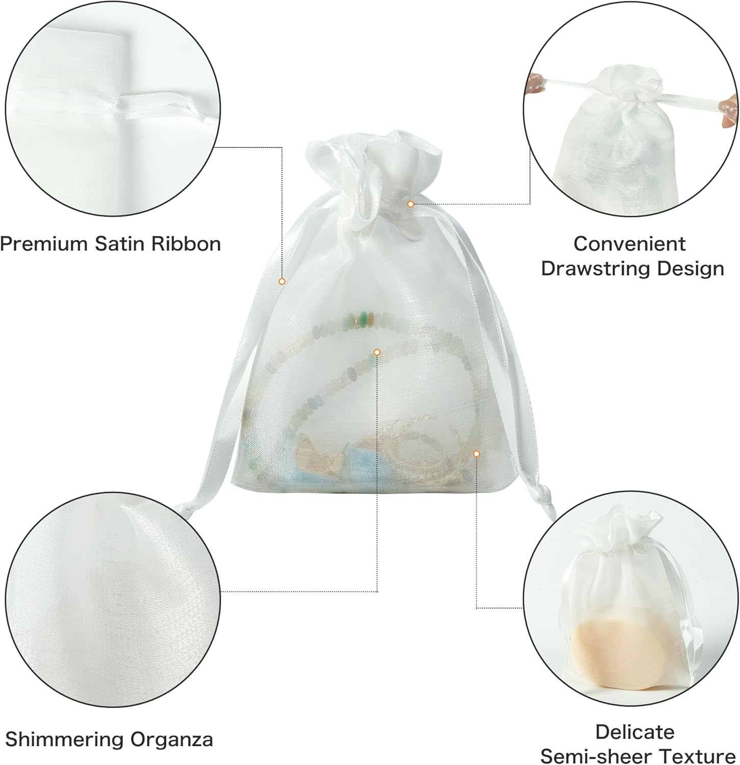 - PREMIUM MATERIAL: Crafted with high-density organza and satin drawstrings, these favor bags have a glamorous gloss that changes with the light, which is different from ordinary organza bags, makes it beautiful and elegant, which is good for special occasions. The delicate sheer fabric combines ethereal translucency with surprising durability, transform small items like jewelry and cosmetics into luxurious displays