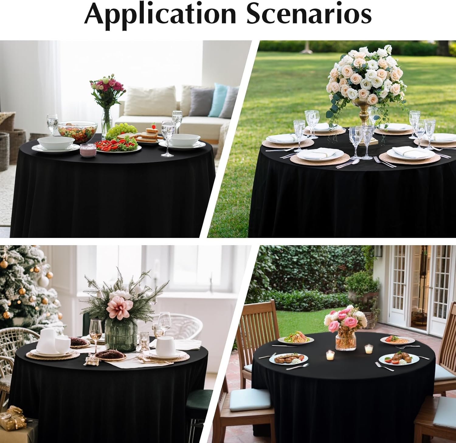 - Size Guide: Each package contains 2 PCS tablecloths. Each round black tablecloth is 60 inches, recommended for round tables from 36 inches to 44 inches, such as coffee tables, tea tables, kitchen tables, garden tables and other tables as long as they fit this modern table cloth, with a droop length about 8 inches to 12 inches. There may be a slight deviation due to manual tailoring