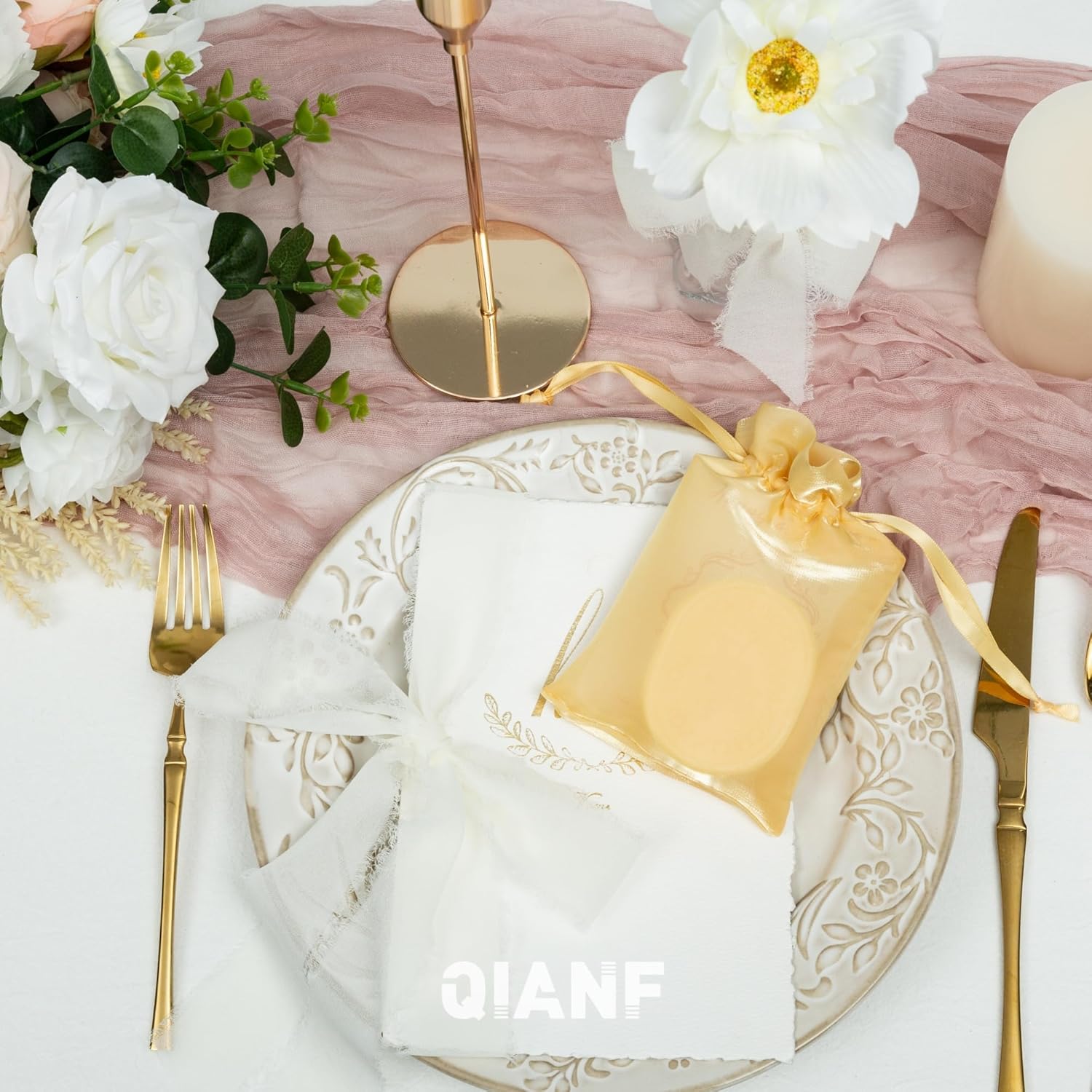 QIANF 20 Pcs Gold Small Organza Bags 4X6 inch for Wedding Favors with Drawstring, Mini Mesh Gift Bags Jewelry Pouch for Candy Bridal Shower Party Favor Baby Shower Christmas
