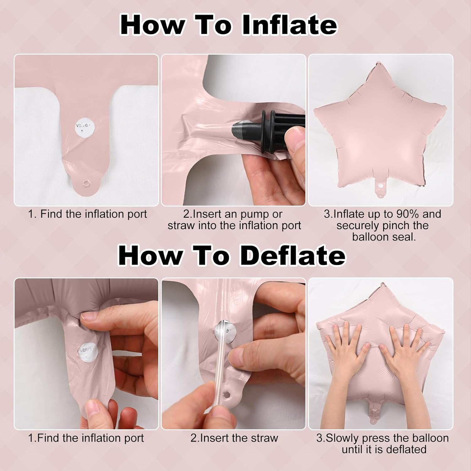 - 💝♻️【Rich & Reusable 18" Foil Balloons】: The rich foil balloons enhance the design sense of the decoration. They can be reused according to the instructions, bring a festive and fun atmosphere to any occasion, time and time again! 🎈🎉(Please place the hand pump under the transparent protective film at the balloon inflation port to inflate. After the activity, insert the attached straw under the protective film and gently press to deflate it for reuse.)