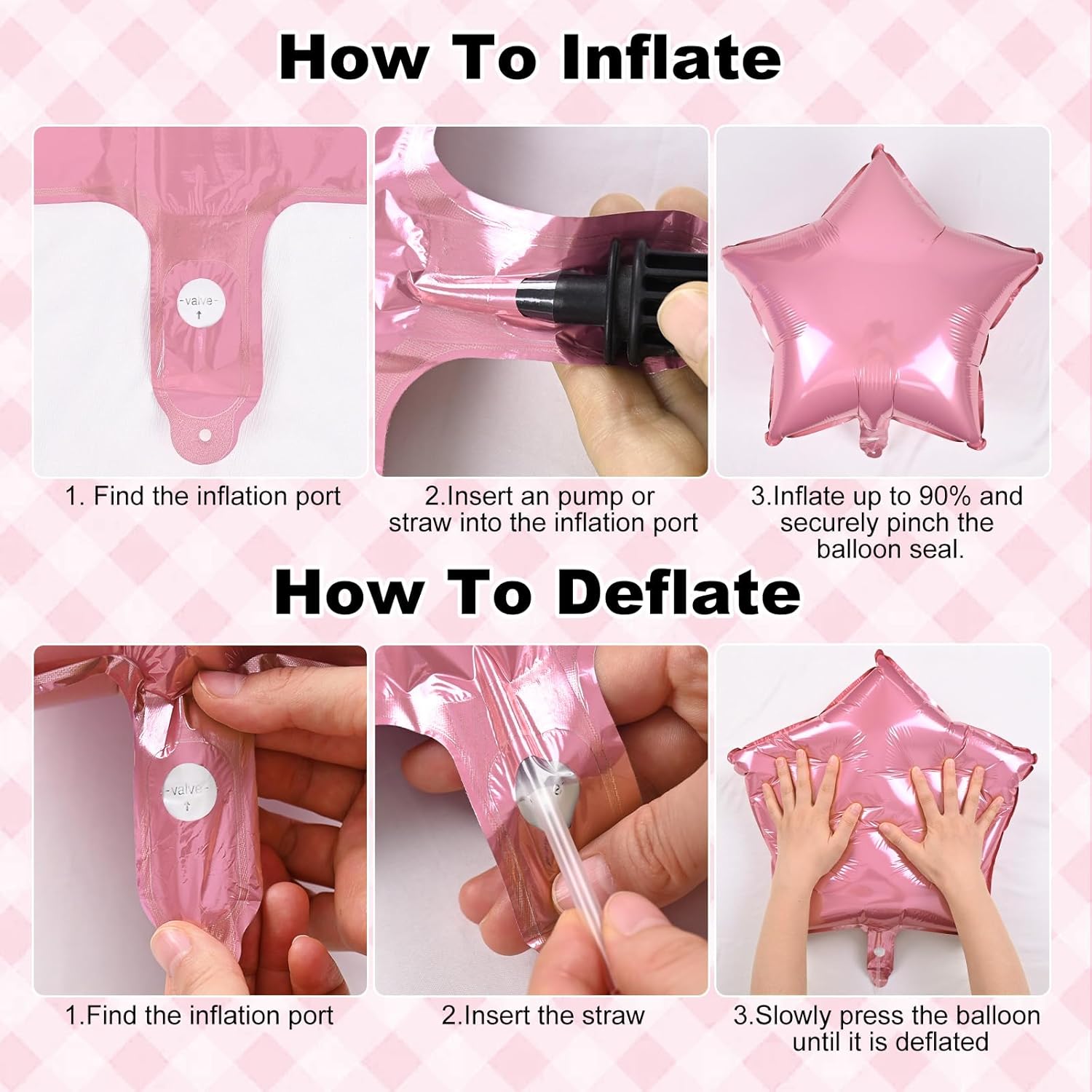 - 💝♻️【Rich & Reusable 18" Foil Balloons】: The rich foil balloons enhance the design sense of the decoration. They can be reused according to the instructions, bring a festive and fun atmosphere to any occasion, time and time again! 🎈🎉(Please place the hand pump under the transparent protective film at the balloon inflation port to inflate. After the activity, insert the attached straw under the protective film and gently press to deflate it for reuse.)