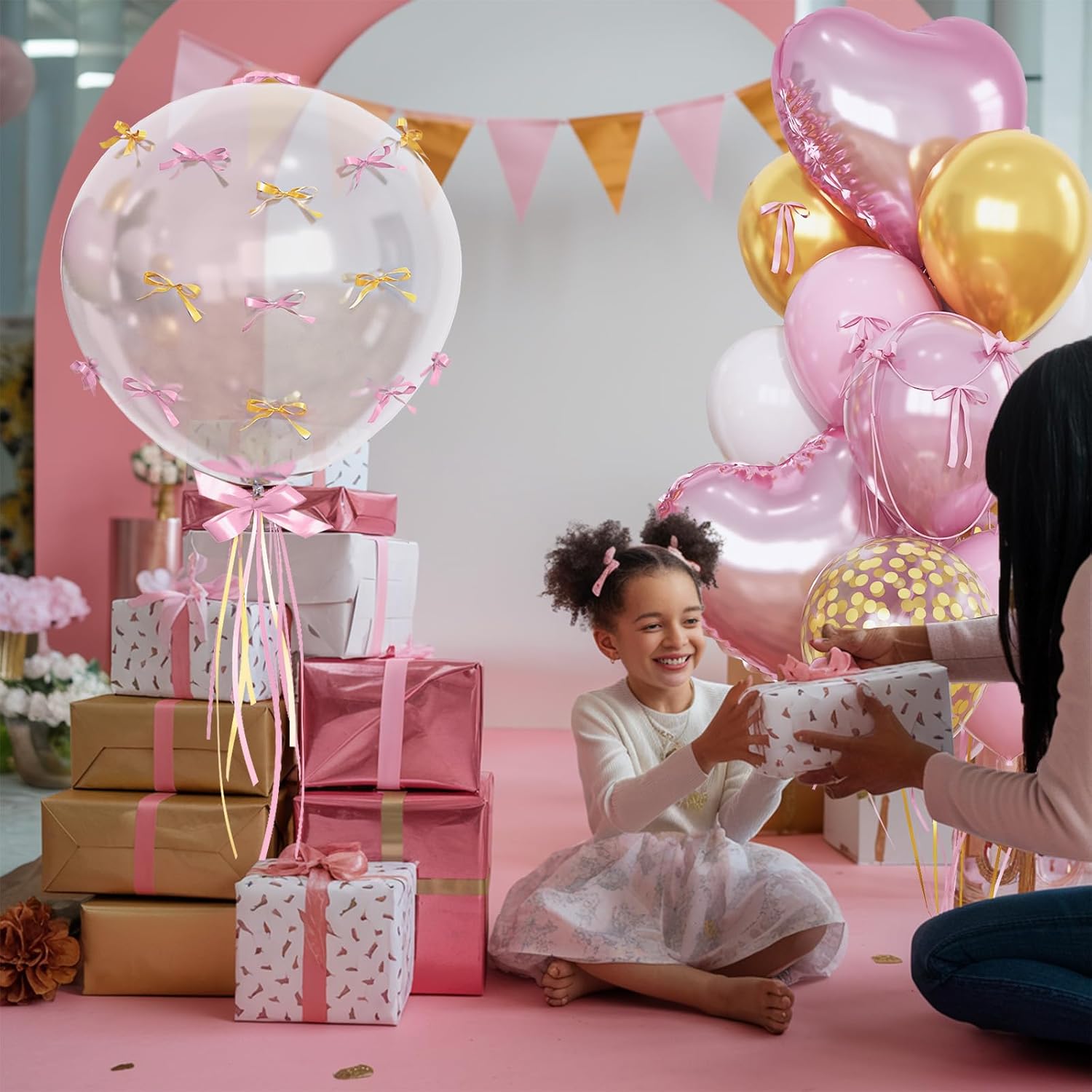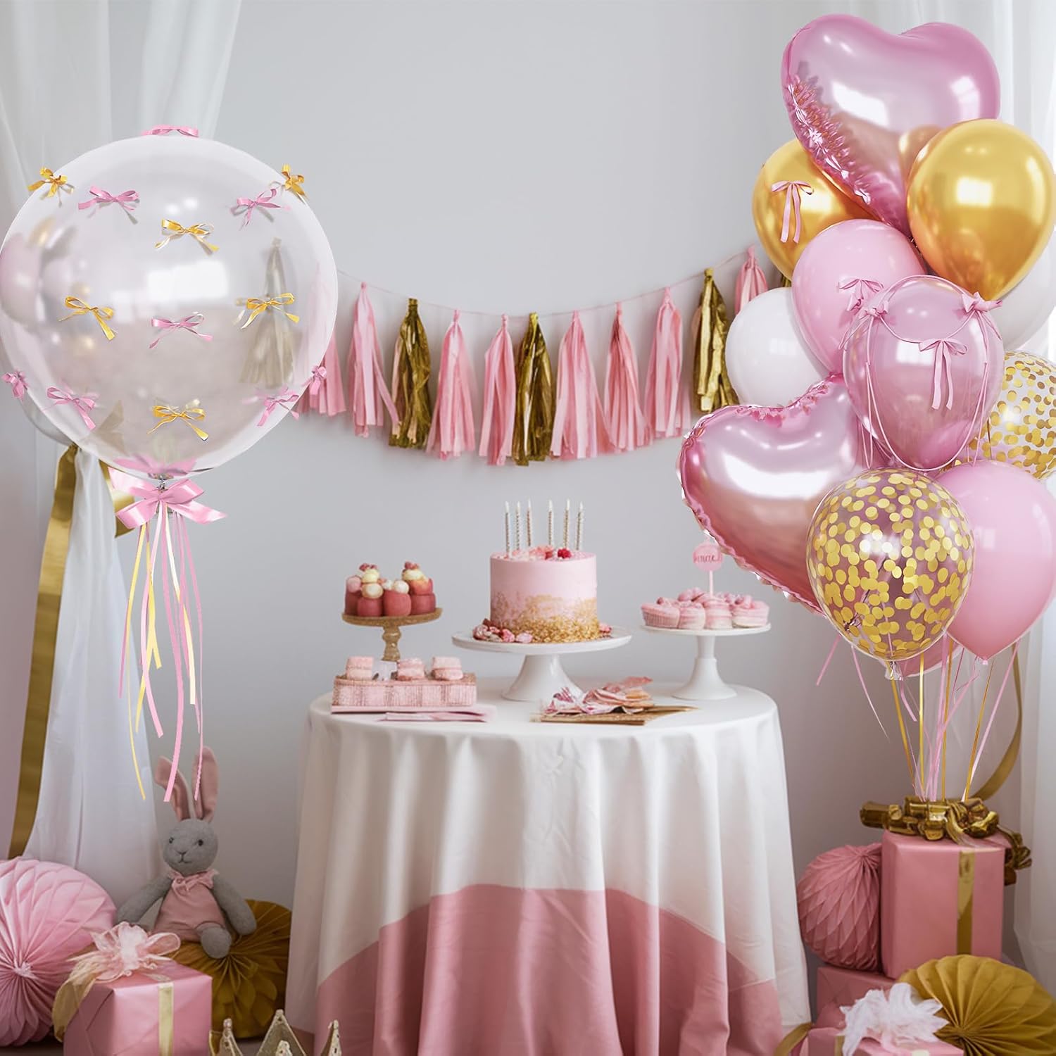- 🥳【Pink Gold Heart Balloon Set - Exquisite Party Decoration】: Pink Heart-Shaped Foil Balloons (18-in x 4), Transparent Balloon (18-in x 1), Metallic Gold Balloons (12-in x 4), Macaron Pink Balloons (12-in x 4), Gold Confetti Balloons (12-in x 4), Pearl Light Pink Balloons (12-in x 4), White Balloons (12-in x 4), 🎀 Gold Ribbon (10M x 1), 🎀 Pink Ribbon (10M x 1). Exclusive color matching by the stylist, featuring a soft and elegant pink-gold palette.