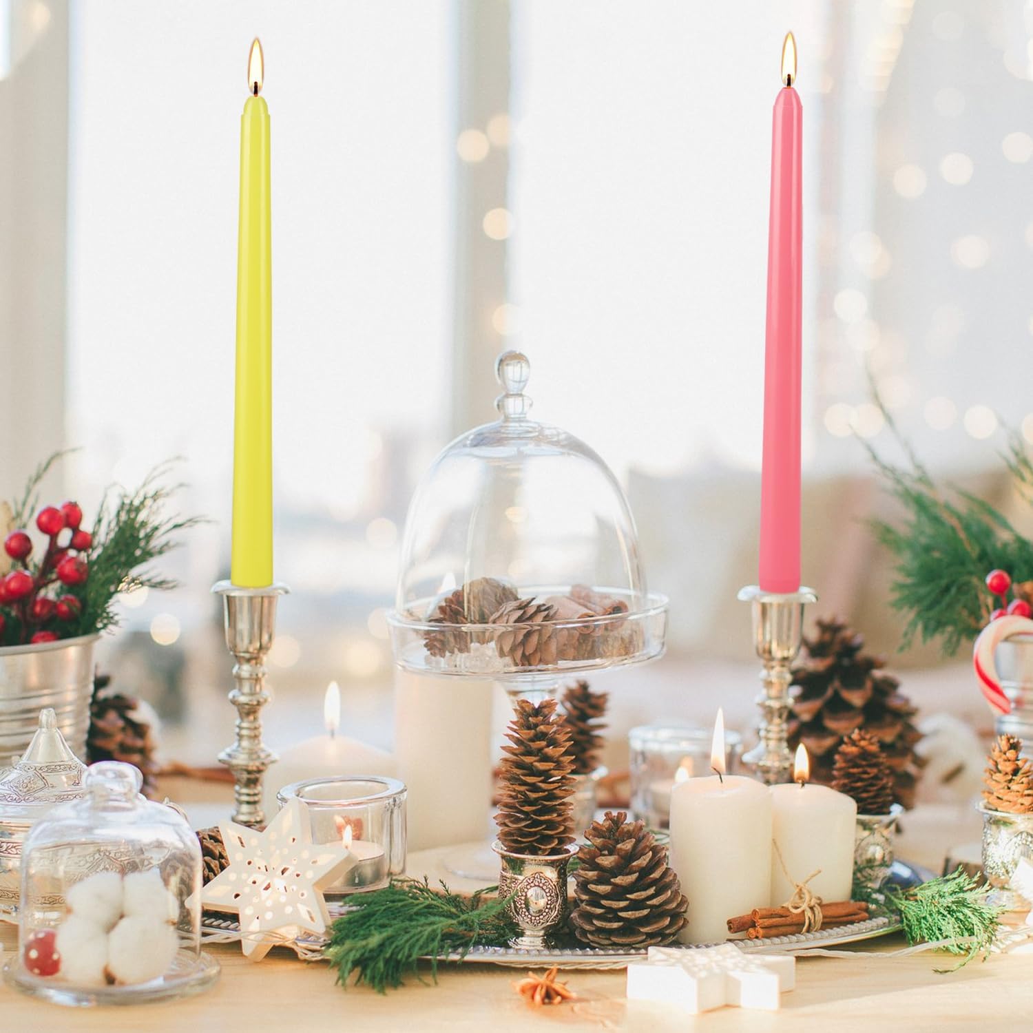 30-Pack 10-Color Taper Candles - 10 Inch Dripless & 10-Hour Burn|Wedding/Birthday/Home Decor with Premium Wax