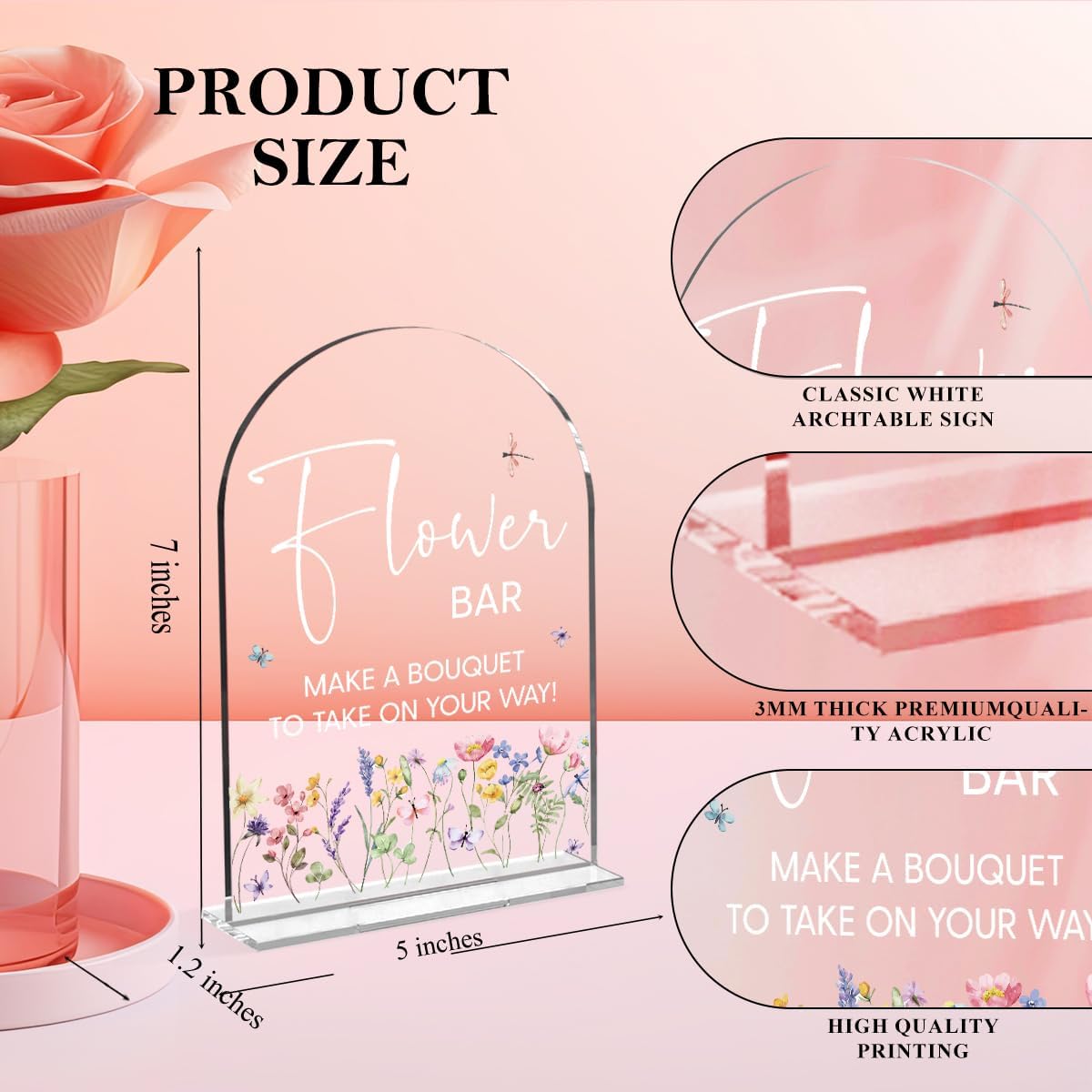 - Package Included: Includes an 5" x 7" white arched acrylic sign with a thickness of 0.12" and comes with an acrylic base measuring 5 x 1.8 inches.