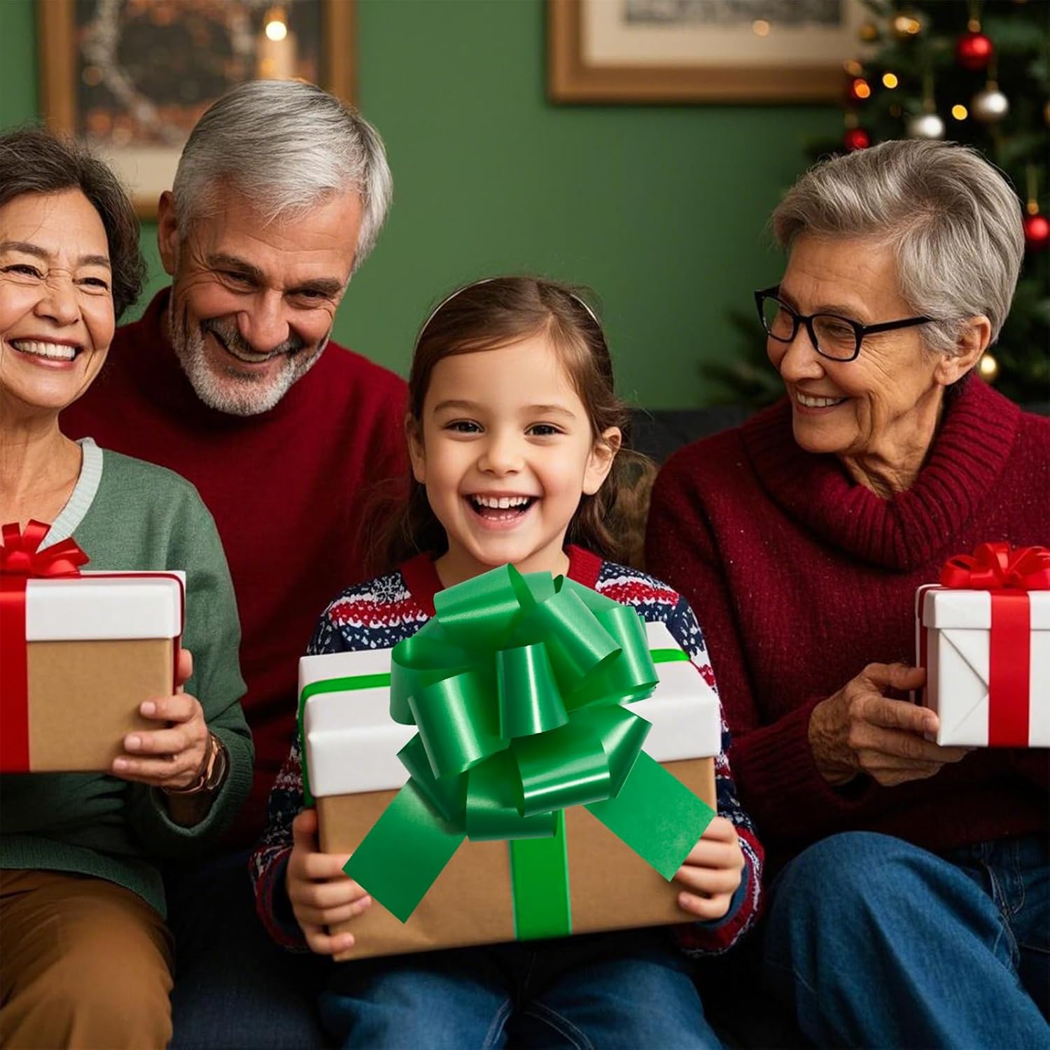 12 PCS 6 Inch Green Pull Bows - Perfect for Gift Wrapping, Wedding Decor, Car Bows, Birthday Parties, Christmas and Valentine's Day