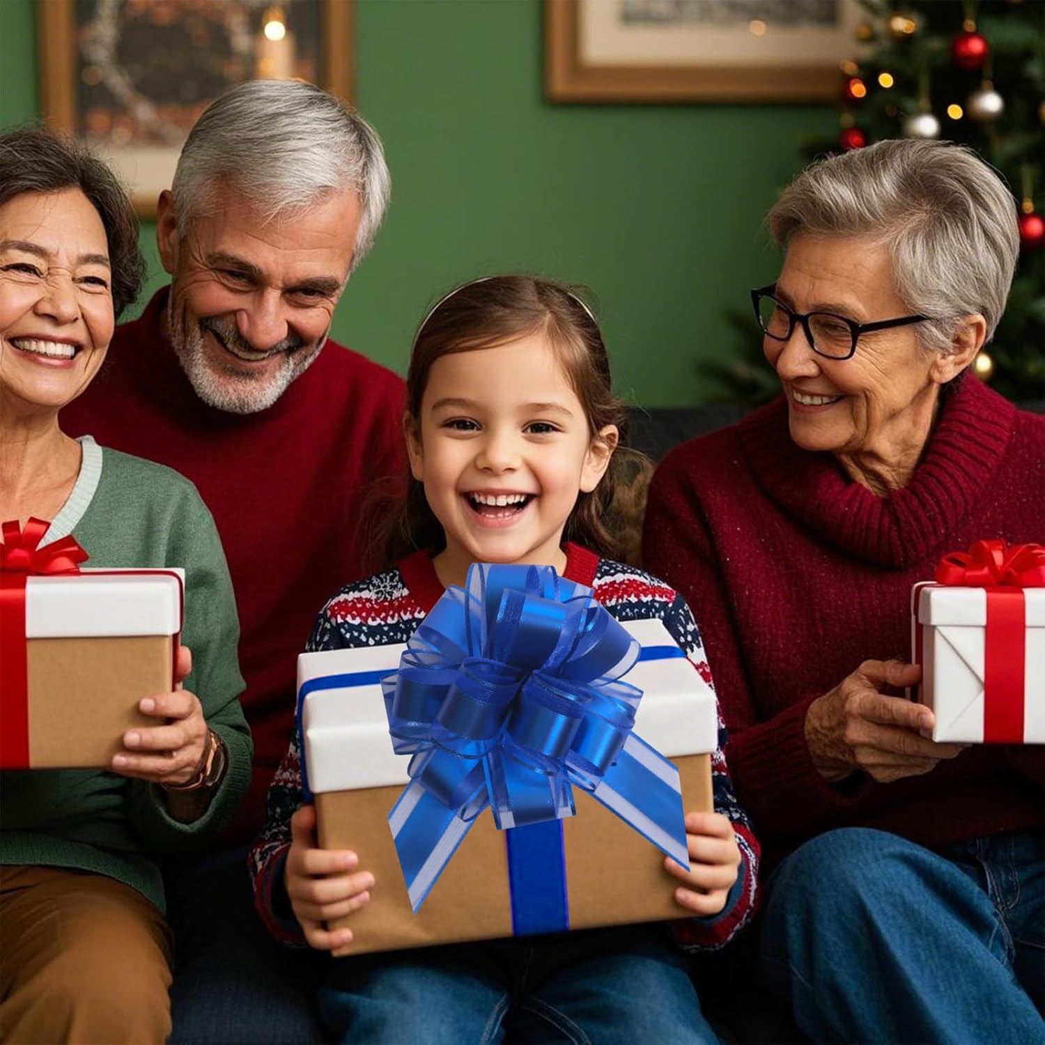 12 PCS 6 Inch Large Pull Organza Blue Bows - Perfect for Gift Wrapping, Wedding Decor, Car Bows, Birthday Parties, Christmas and Valentine's Day