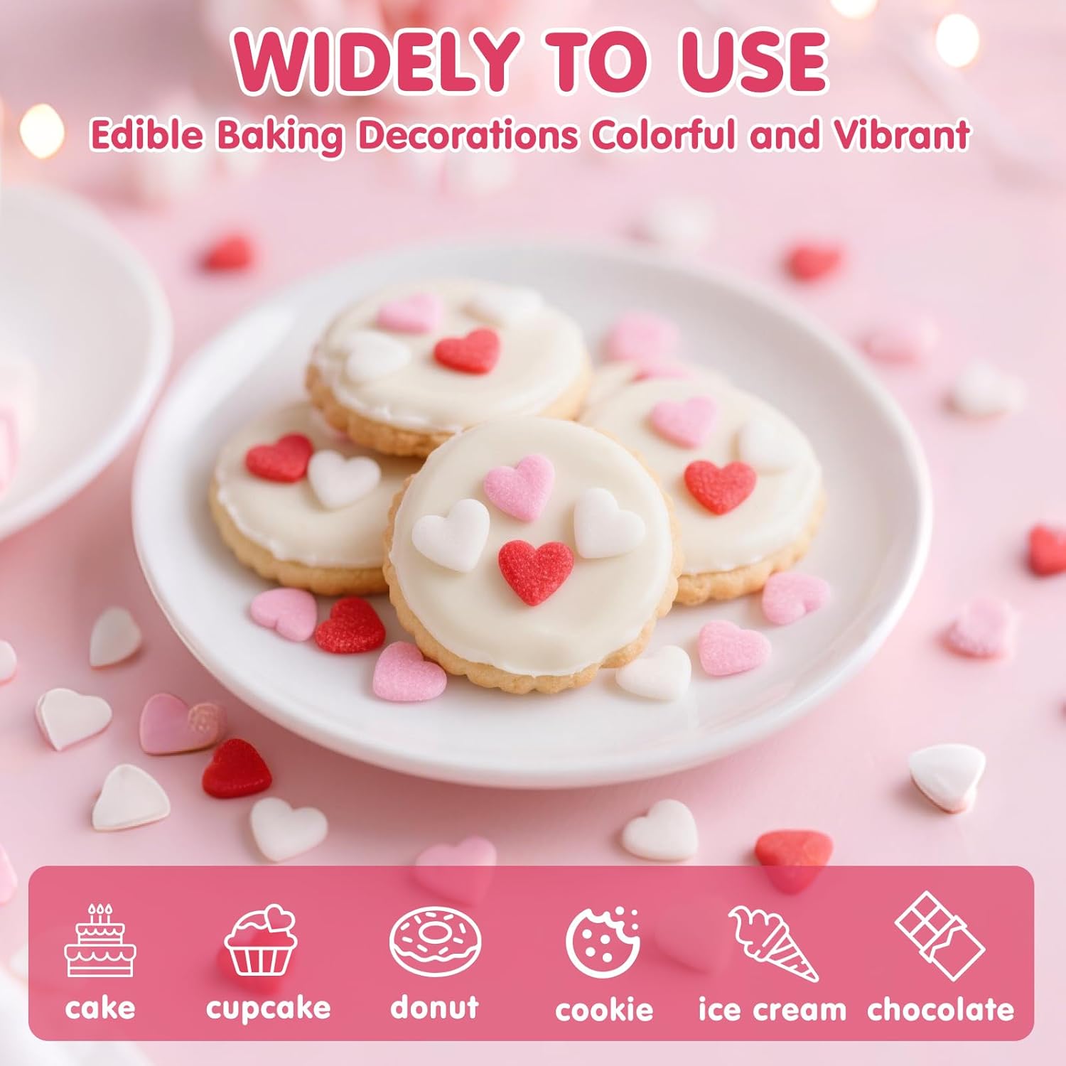 Edible Heart Sprinkles,Red Pink White Heart Shapes Mix,Sugar Sprinkles for Decorations Baking,Cake Ice Cream Cookies Cupcake Toppe Chocolate,Birthday Wedding Valentines Christmas Party Supplie,100g/3.53oz