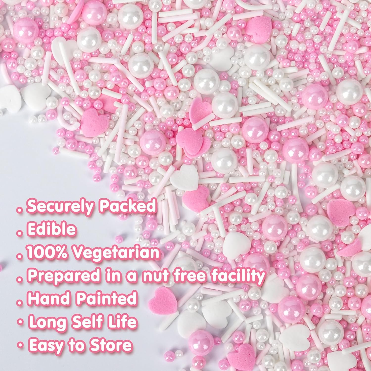 Edible Heart Sprinkles for Cake Decorating,White Pink Pearl Sugar Jimmies Mix Size 130g/4.58oz,Baking Candy Decorations,Cupcake Toppers,Cookie Donuts Ice Cream Dessert Decorating,Wedding Birthday Party Valentines Christmas Supplies