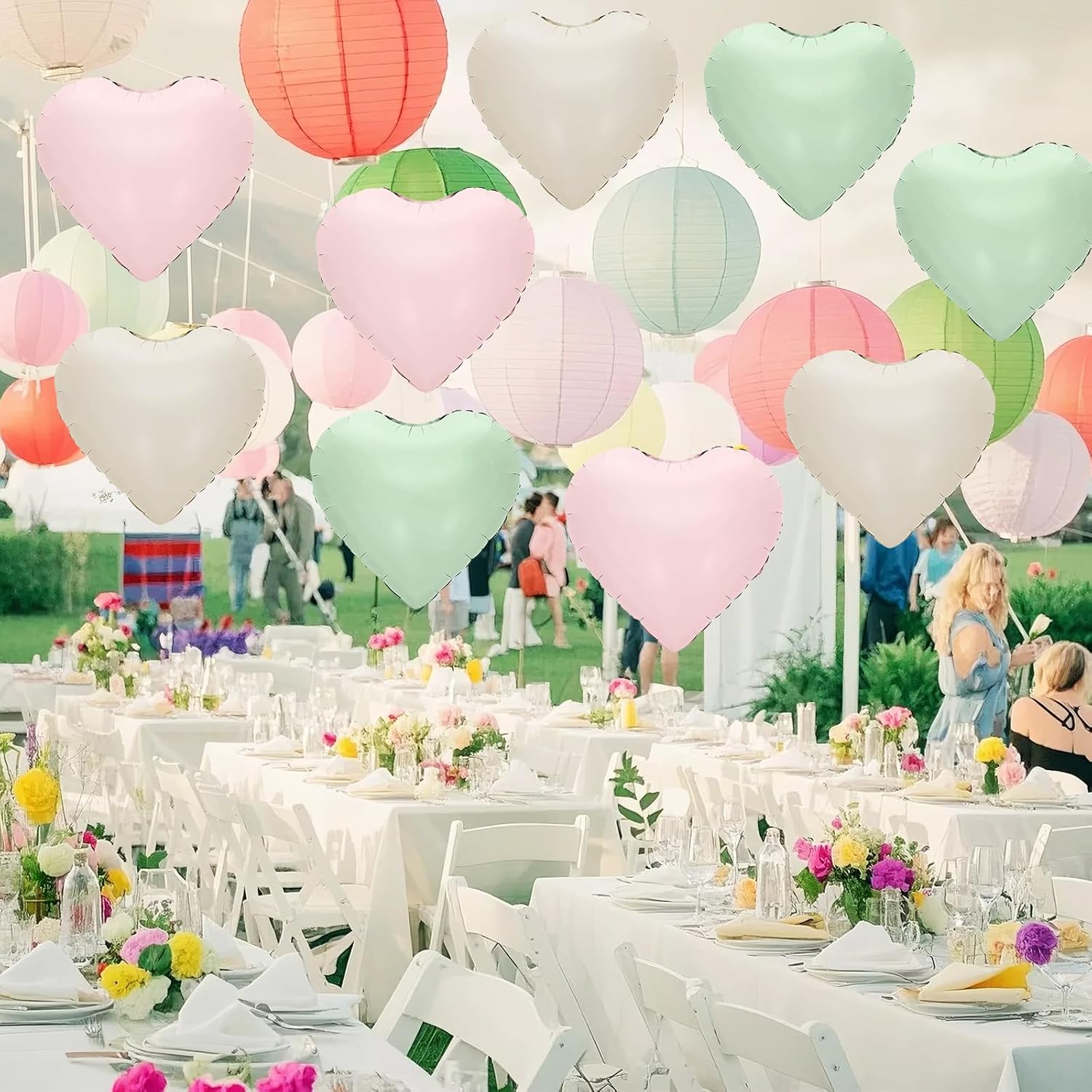 - 12PCS HEART BALLOONS:Package include 4pcs cream white heart foil balloons,4pcs baby pink heart foil balloons,4pcs olive green heart foil balloons,1pc straw.Large enough to help you better decorate your party.