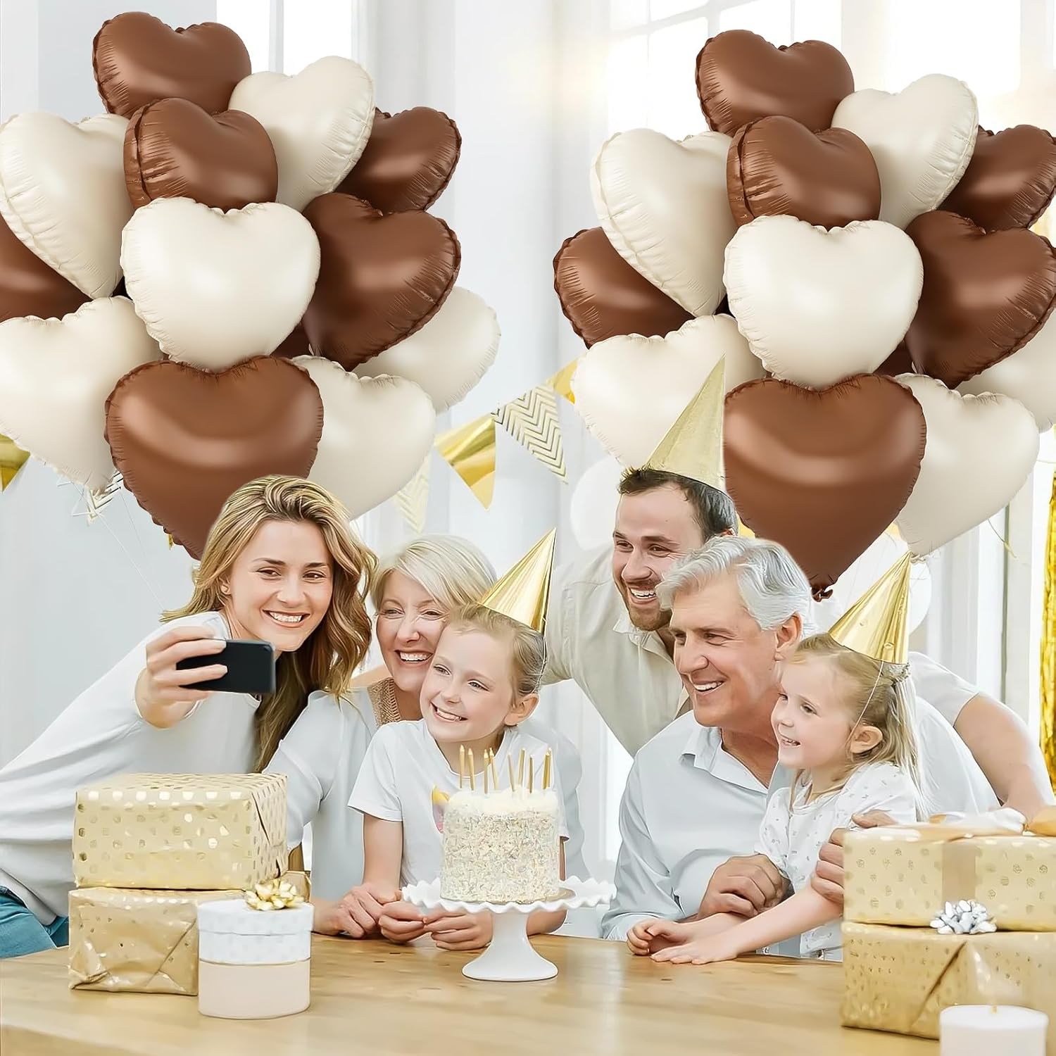 - WIDELY APPLICATION:This boho brown cream white heart balloon can be used for a variety of occasions,such as birthday,anniversary,Valentine's Day,Mother's Day,baby shower,gender reveal,weddings,engagement,bridal shower,marriage proposals and other parties,can also be used as a photo background,etc.Make a deep impression on the party guests.