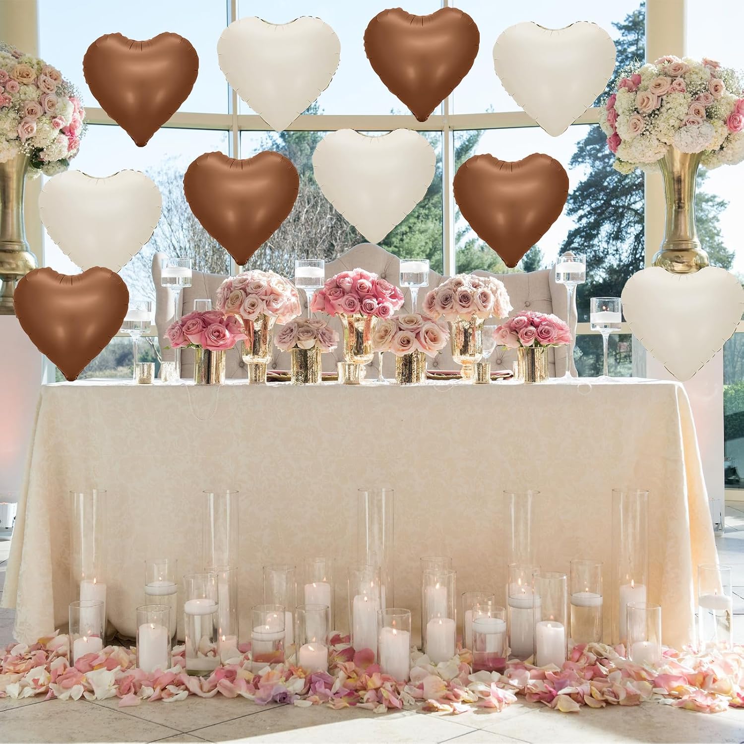 Sand White Brown Heart Balloons,12Pcs 18Inch Cream White Coffee Brown Heart Shaped Foil Helium Balloons for Baby Shower Birthday Anniversary Wedding Engagement Party Decorations