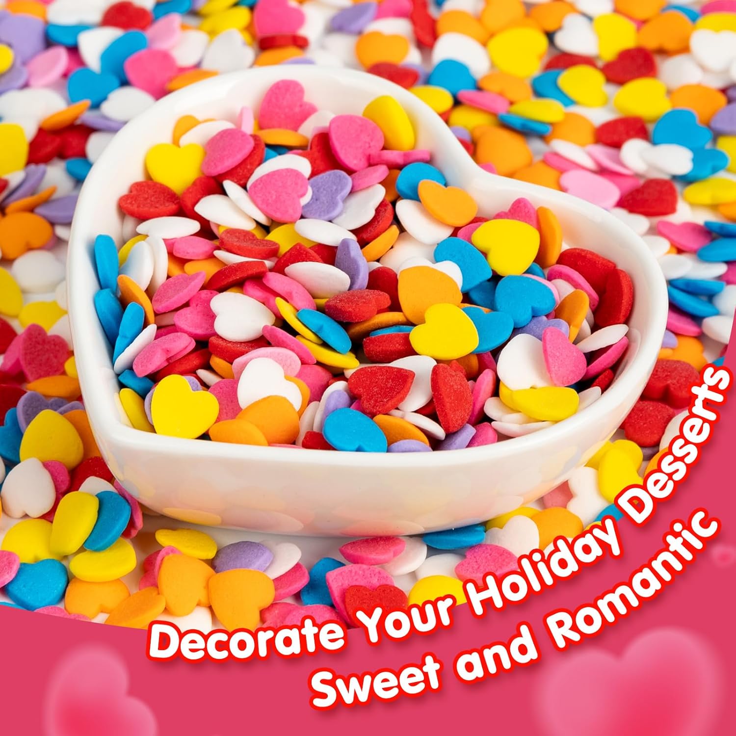 - Food-grade Sprinkles: The edible heart sprinkles are made with international food-grade ingredients and a pure, vegan-friendly formula Preservative Free,Crafted from natural cane sugar crystals and manufactured,Nut Free, Dairy Free, Chemical Free, Soy Free, Non-GMO. Produced using food-safe standards, the process does not come into contact with allergenic substances and uses Tamper-proof food label
