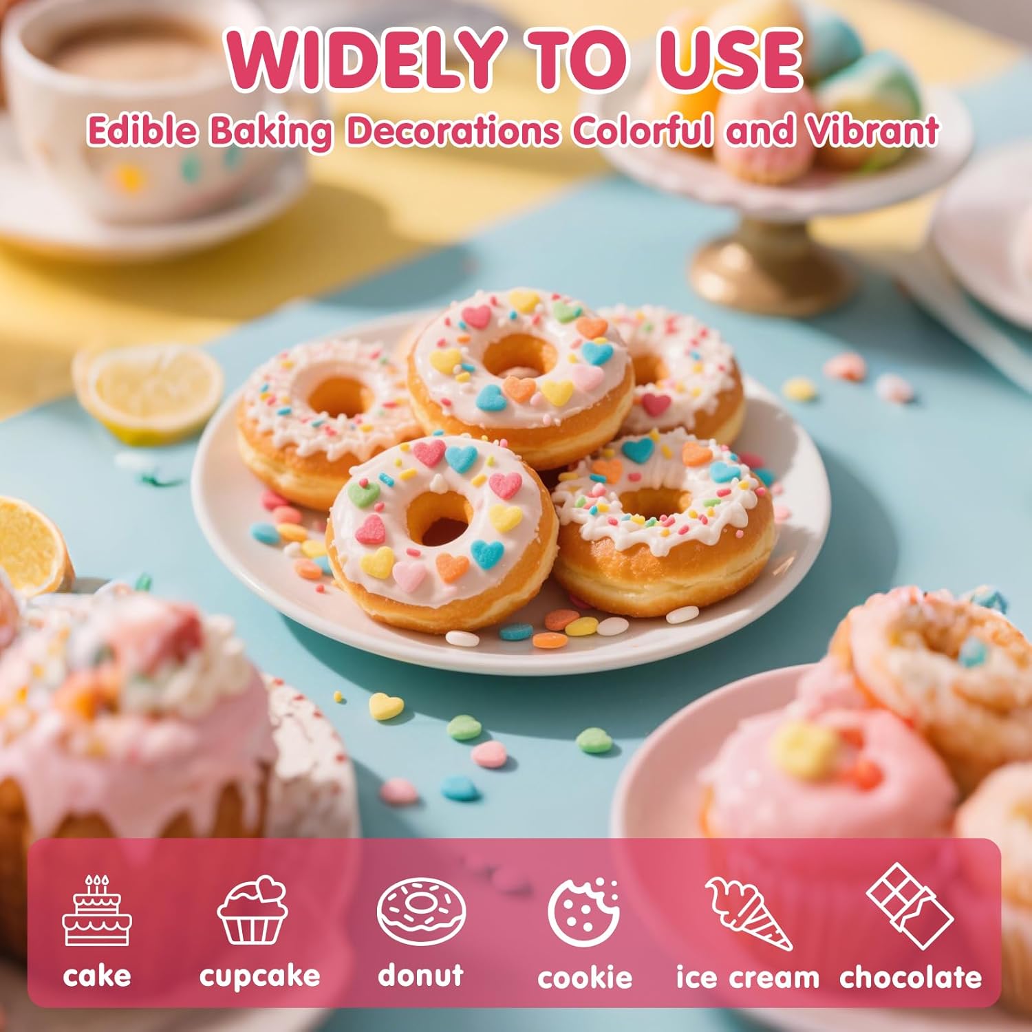- Versatile Dessert Decoration:1 edible bottle of rainbow heart shape sprinkles, 100g/3.53oz.Our sprinkles includes mix color sprinkles,perfect for meeting all your baking decoration needs.The sugar decorations are edibled candies.After baking, decorate the cookies or cake with pearl sugar to avoid melting