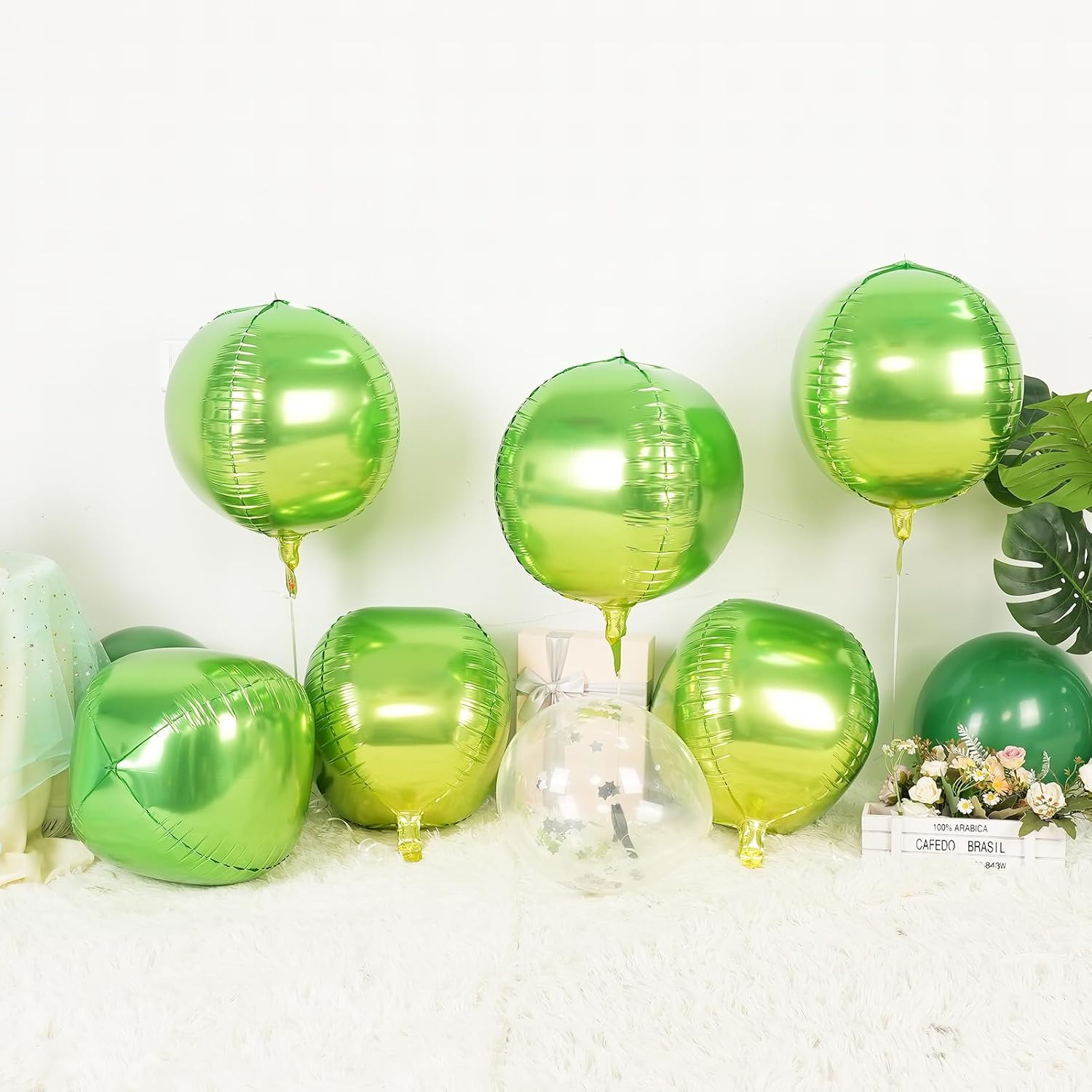 - 【6PCS ROUND BALLOONS】package include 6pcs 22inch Gradient Green round giant 4D foil balloons. The Gradient Green round balloons are large enough to help you better decorate your party.