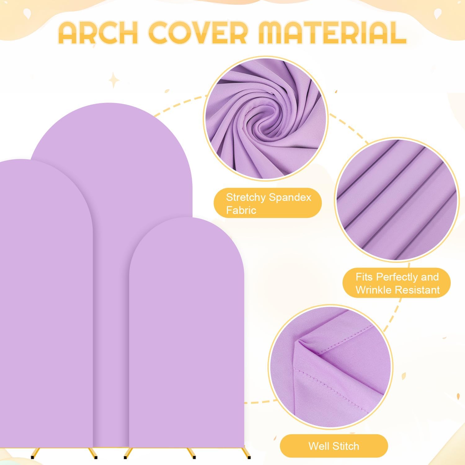 FUHSY Set of 3 Metal Backdrop Stand with Wedding Arch Cover 7.2FT, 6.6FT, 6FT Spandex Lavender Arch Backdrop Stand Cover Balloon Arch Frame Stand Backdrop for Birthday Party Bridal Baby Shower Decor