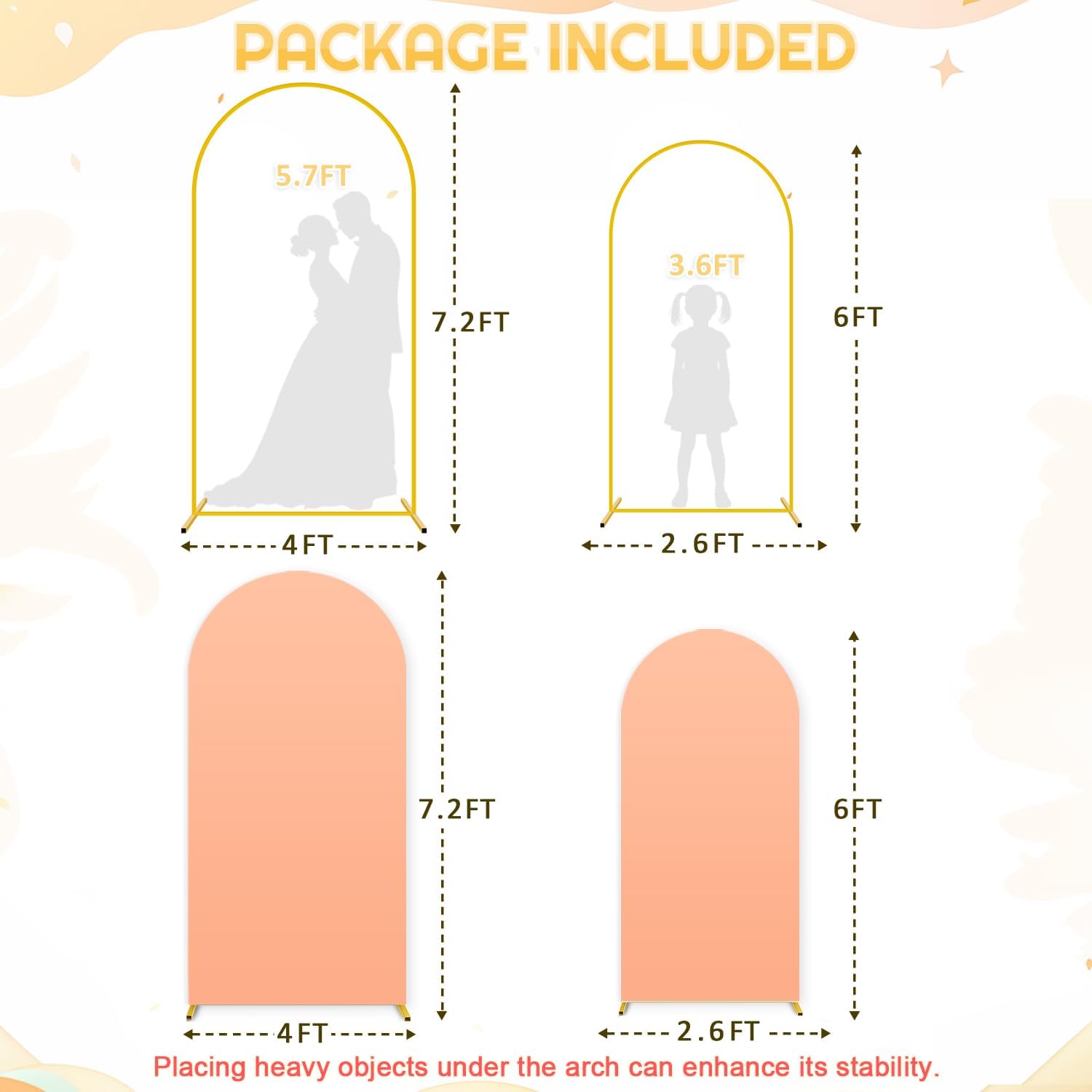 - 🥂【Package Included - Arch Backdrop Stand and Cover】You will receive 2 gold backdrop arch stand and 2 peach arch and cover backdrop set. Size: Size: 7.2ft H x 4ft W, 6ft H x 2.6ft W. Let's create unforgettable moments with our backdrop arch stand with cover!