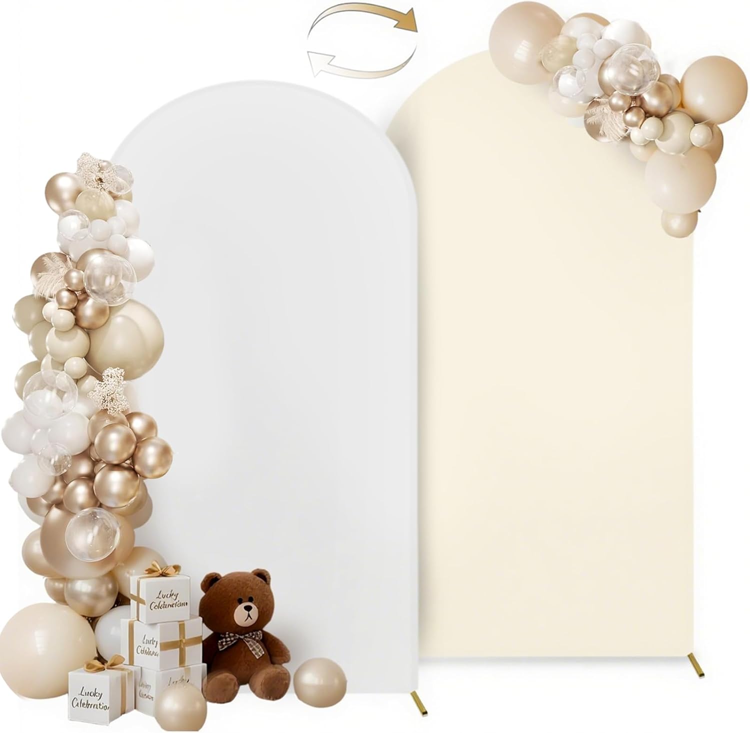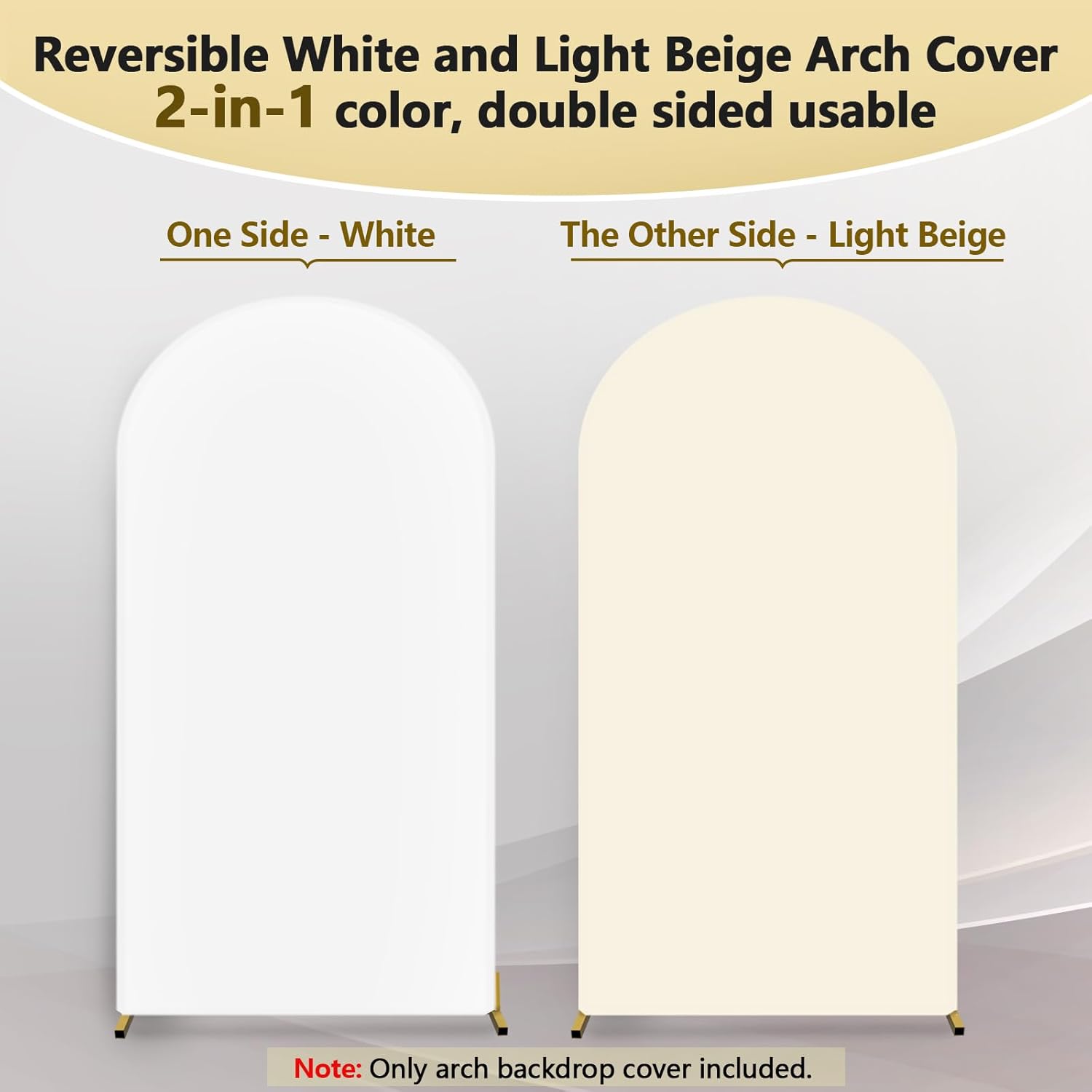 - Thick Spandex Arch Cover: This 7.2 ft white and light beige arch backdrop cover is made of stretchy spandex, not see through, 2-sided and zipper design for seamless decoration, perfectly display your party decoration on either side ⚠One Arch Cover with Double Color