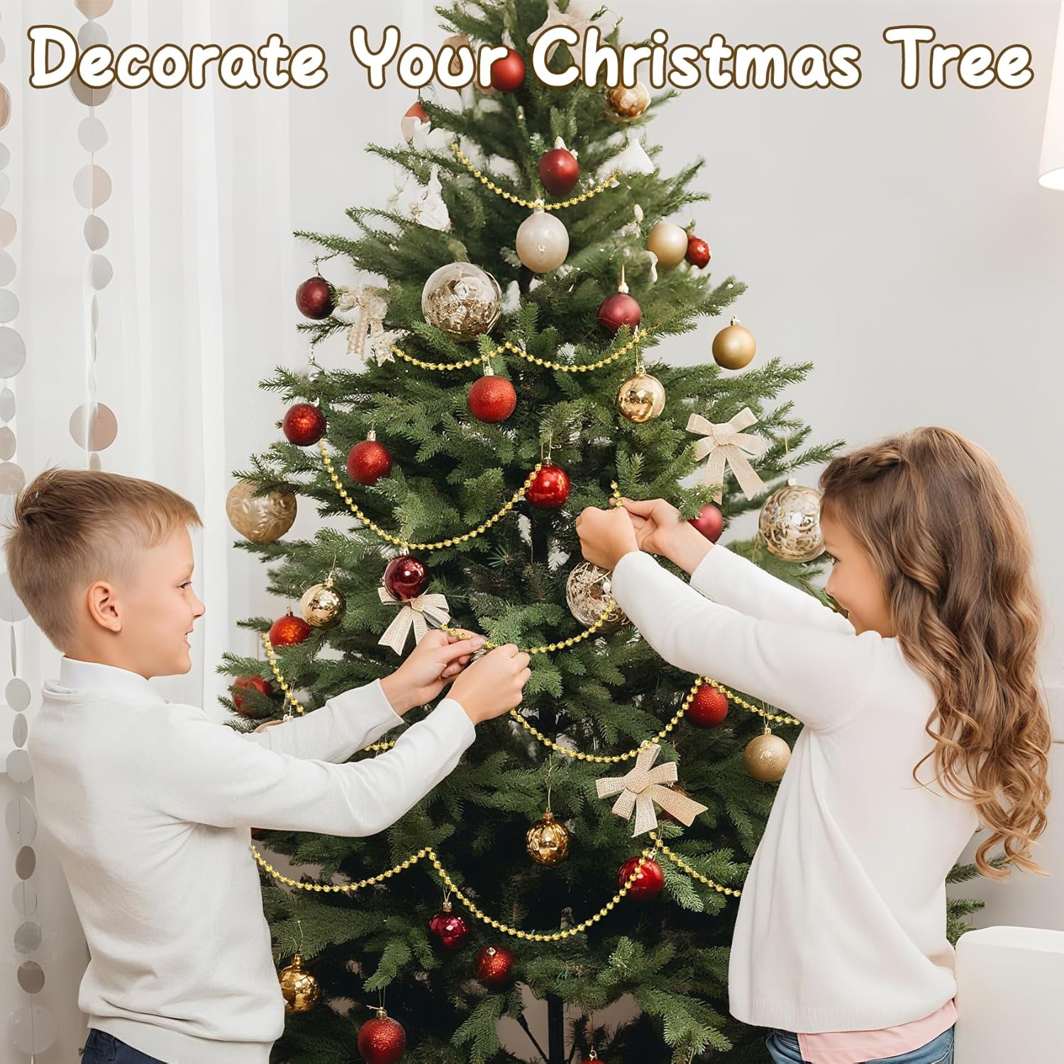 Pearl Beads Garland, 6 MM Gold Faux String of Pearls, Pearl Garland for Christmas Tree 82FT Pearl Beads Strand Spool Bead Roll for Crafts Floral Centerpieces Wedding Party Christmas Tree Decorations