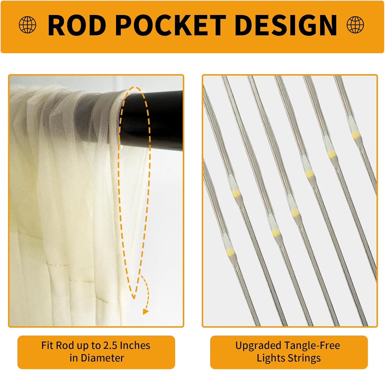 - Quick Setup in 3 Steps: 1. Hang curtains via rod pocket on any pipe/stand. 2. Attach lights using included clips before untying strands. 3. Plug USB into power bank/wall outlet β instant warm glow and choose from 8 lighting modes to create a romantic and magical atmosphere for any occasion! Tangle-free design saves 70% setup time