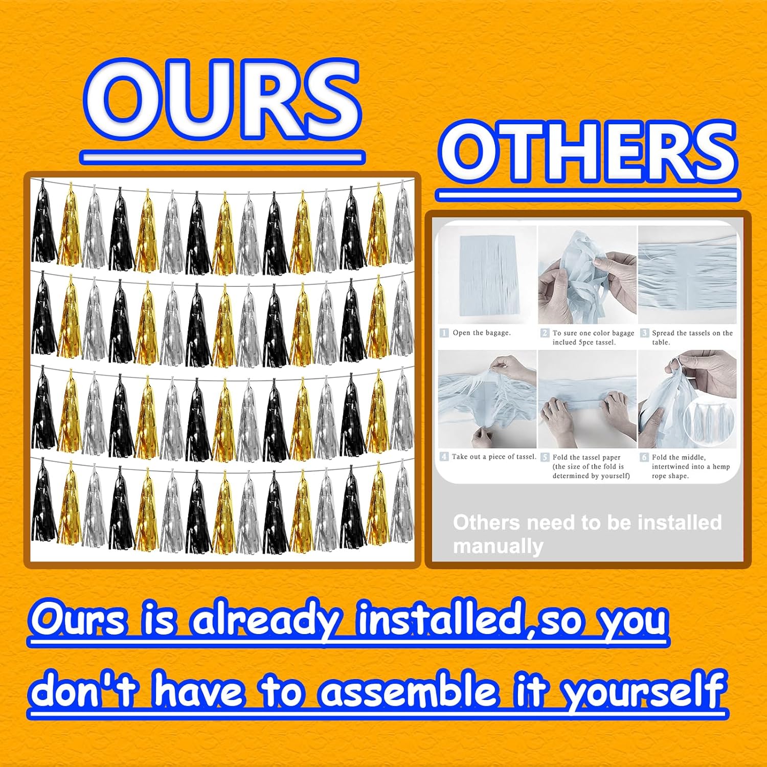 - 【Multiple Colors】Pair with metallic foil fringe garland of different colors to achieve the color combination you want. Show off your creativity by pairing this gold foil wall hanging banner with other garland in different colors to fulfill your dream of creating the perfect party scene.