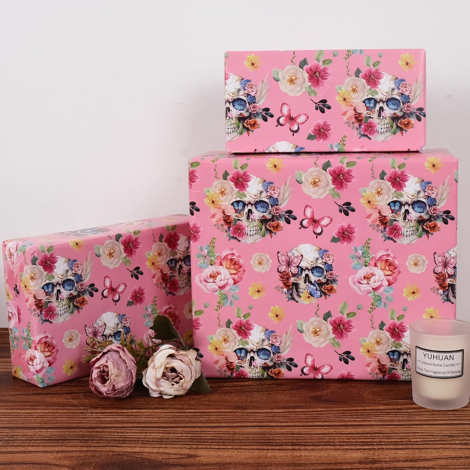 - Unique & Funny Skull Flower Design - Beautiful and feminine designs, different lovely flowers are printed on thick wrapping paper, which make it ideal for creating a wonderful gift presentation that leaves a lasting impression