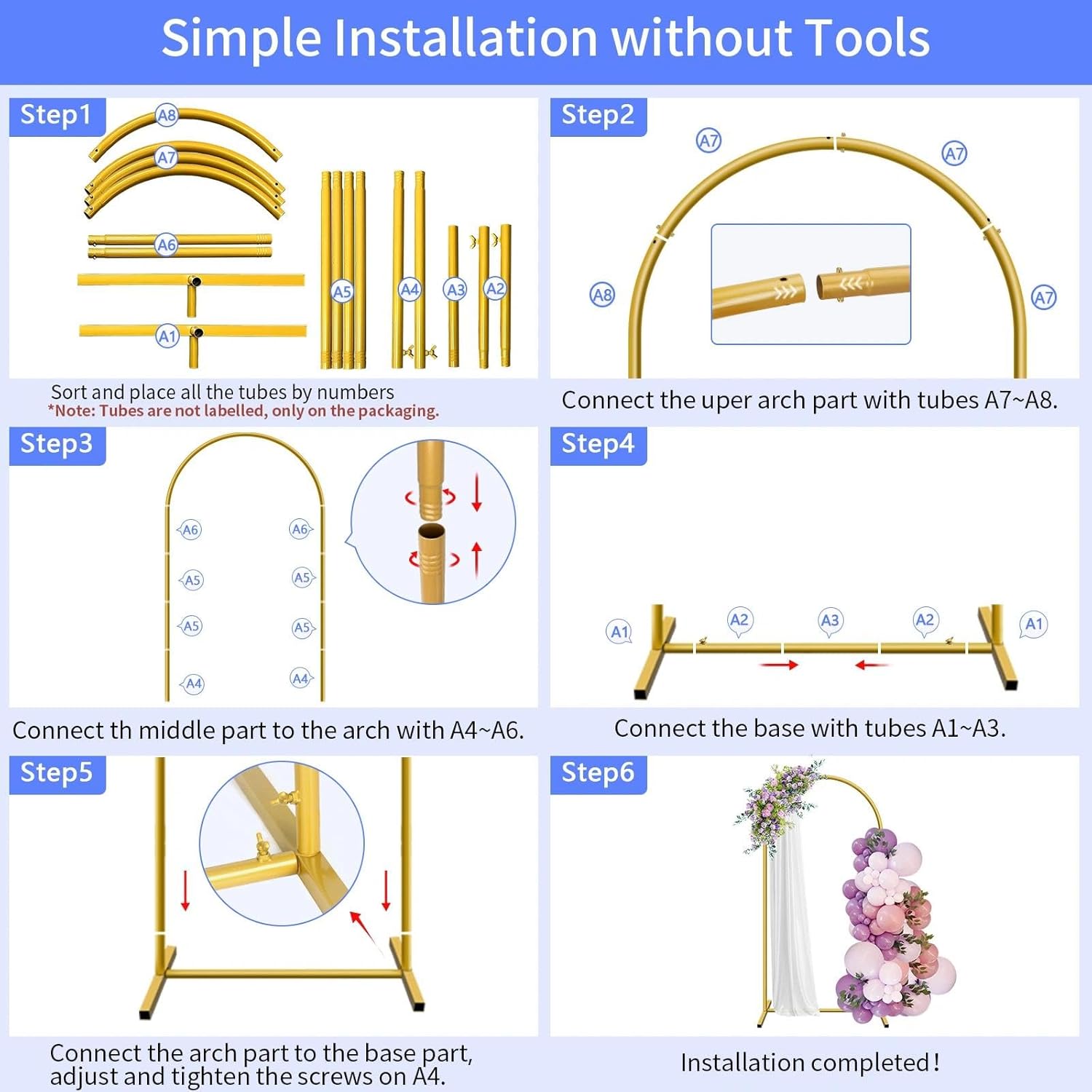 - Decorative Possibilities: The gold arch stand can be decorated with balloons, floral backdrops, greenery, tulle, fabric, LED lights and garlands and more, perfect for creating balloon arches, wedding arch stand, background arch stand, photo backdrop arch