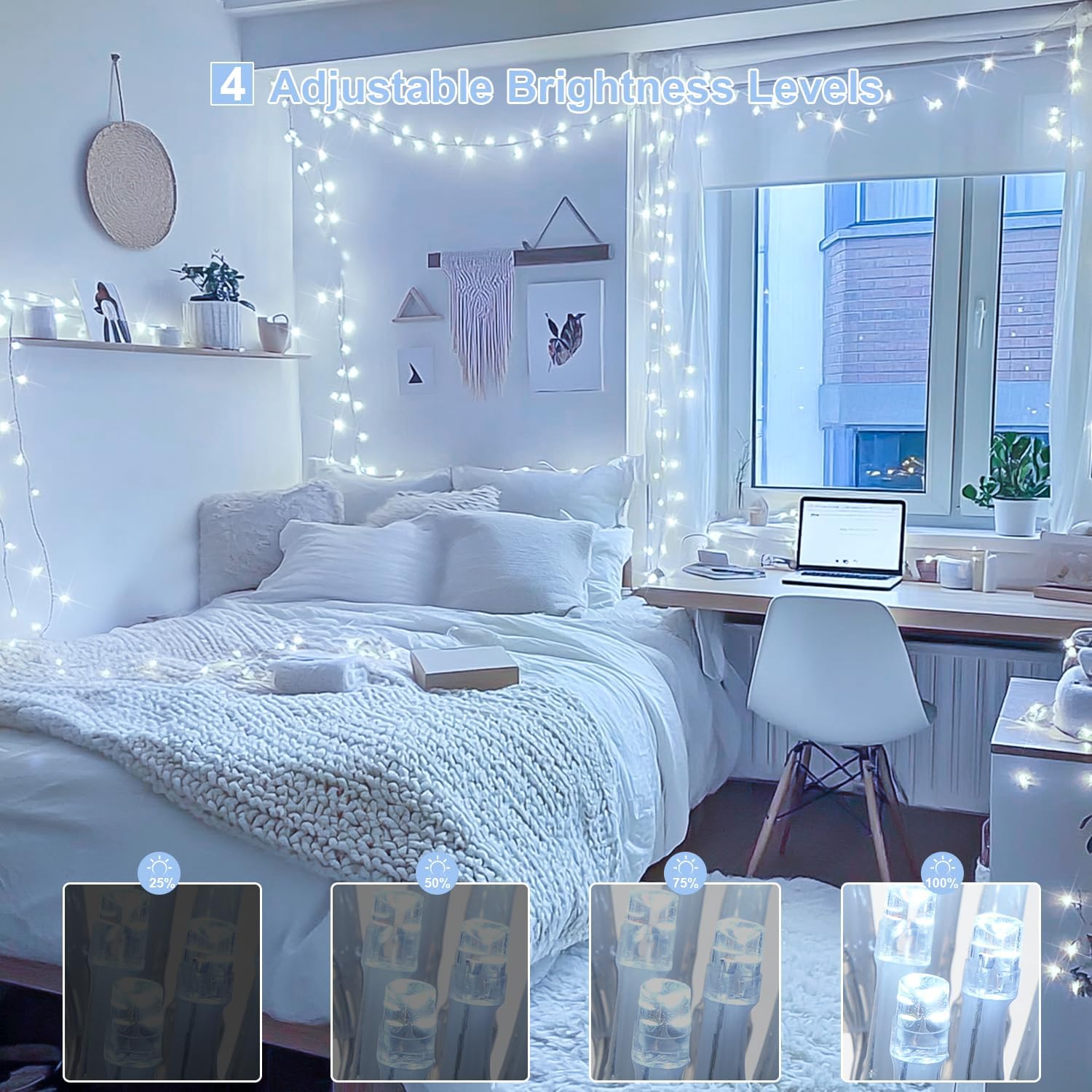 - 【Widely Applicable Christmas Lights】Our LED Christmas tree lights have a wide range of uses and are suitable for various occasions. For fireplace rack, bedroom, fireplace, dormitory, or wall, garden, lawn, porch, etc., they can all achieve excellent results. The white christmas lights’ versatility makes it an ideal choice for holiday decoration, adding a warm festive atmosphere to every corner.