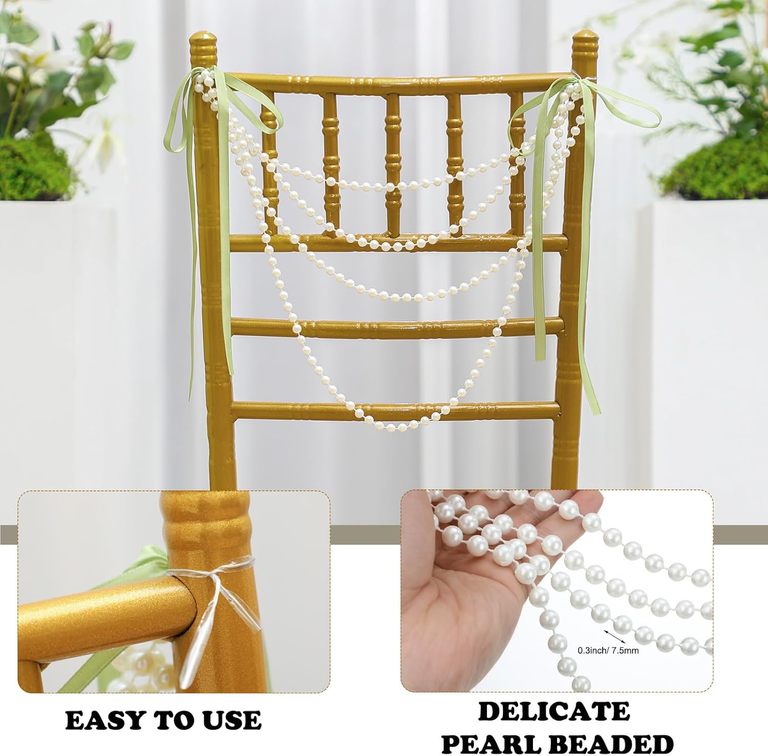- Sufficient Quantity for Versatile Use: this package includes 16 wedding chair back garland sash with pre tied gray green bows, providing ample quantity for most applications; Whether you're decorating for a wedding, party, or special event, the large quantity allows for creative arrangements, such as pearl chair back garlands or beautiful centerpieces, ensuring your decor is visually appealing and eye catching