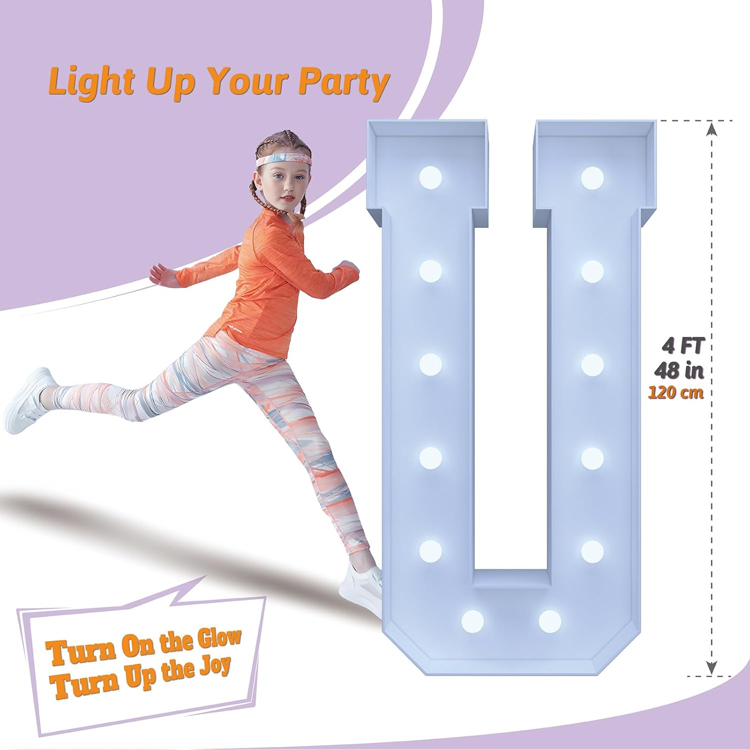 4FT Marquee Light Up Letters U – Cool White LED, Easy to Assemble Foam Board with Back Support, Large Marquee Light Up Letters for Birthday, Wedding, Party, Anniversary, Baby Shower Decor