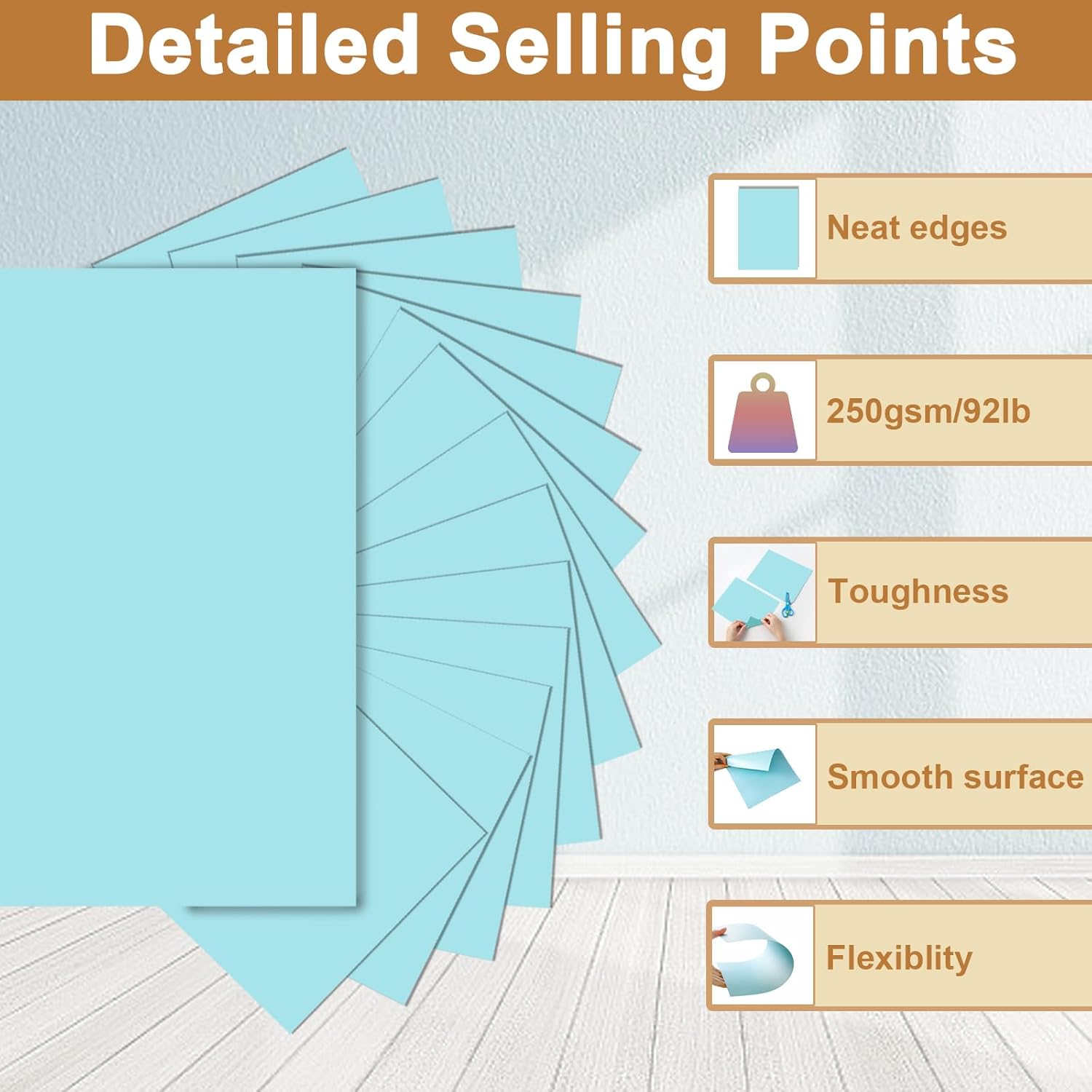 - ▶LIGHT BLUE CARDSTOCK: Each package includes 120 sheets of Heavyweight blue cardstock paper, measures 8.5 x 11 inches in size, 1400 grams in weight. Double sided, acid free and environment friendly