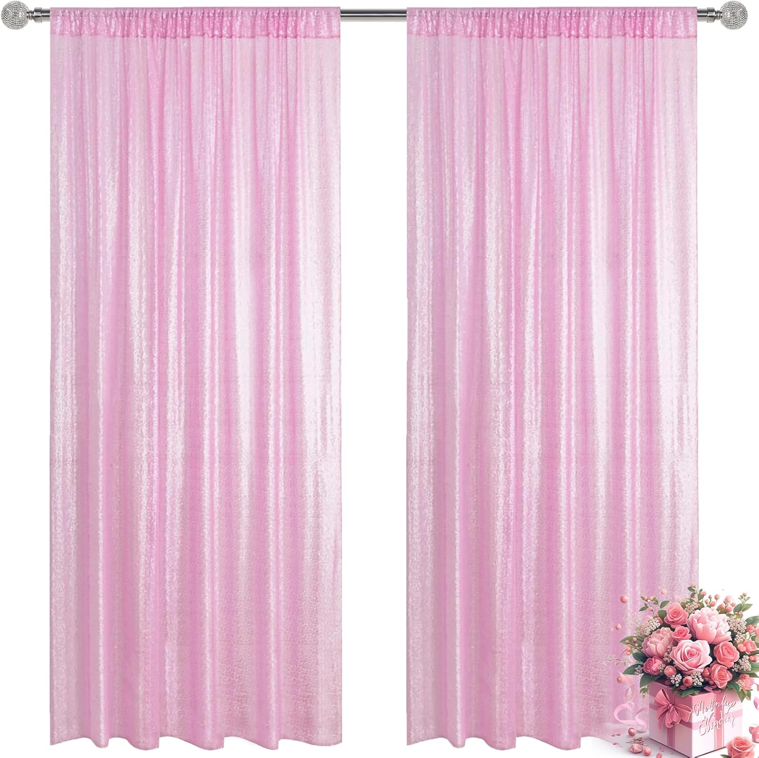 - Package Include: 2Pcs 2FT Wide X 8FT Height sequin backdrop curtain with a 4-inch wide rod pocket on the top, which is easy to install.