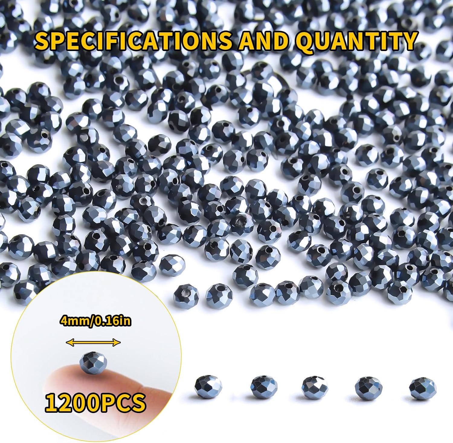 1200Pcs 4mm Crystal Glass Beads for Jewelry Making Beads for Bracelets Necklace Pendants Making Supplies(Navy Blue)