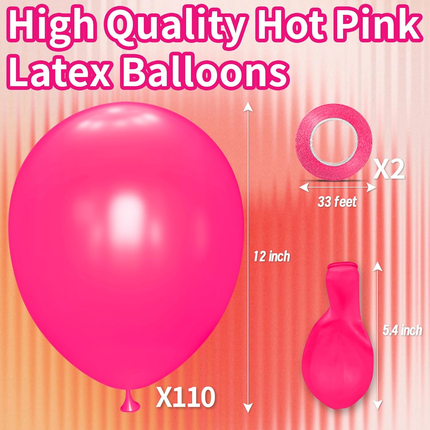 KAWKALSH Hot Pink Balloon 12 Inch, 110pcs Latex Party Balloons Helium Bright Color for Birthday Baby Shower Wedding Party Supplies Arch Garland Decoration