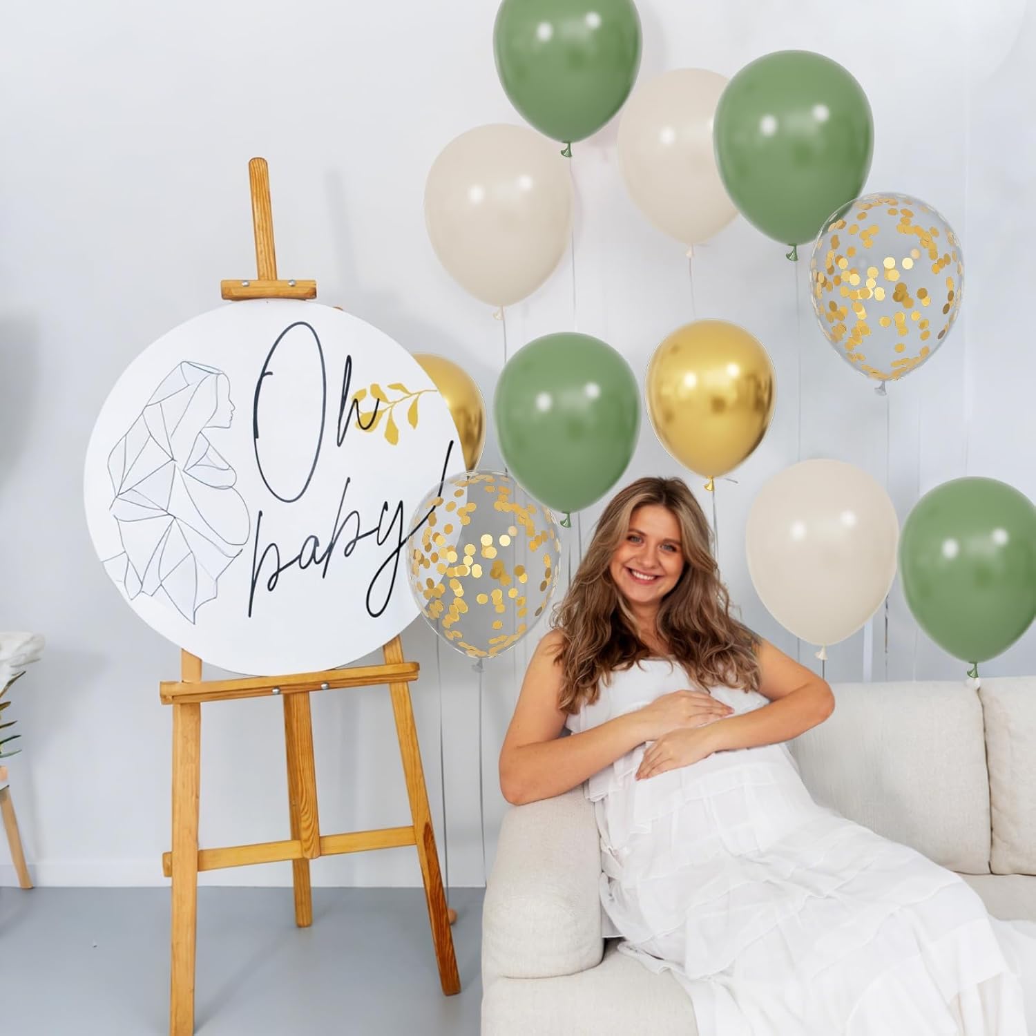 - ✨ Sage green baby shower decorations :The gold balloons in party balloons have a metallic sheen and are filled with gold confetti that catches the light beautifully, adding depth and celebratory luster to your decor.