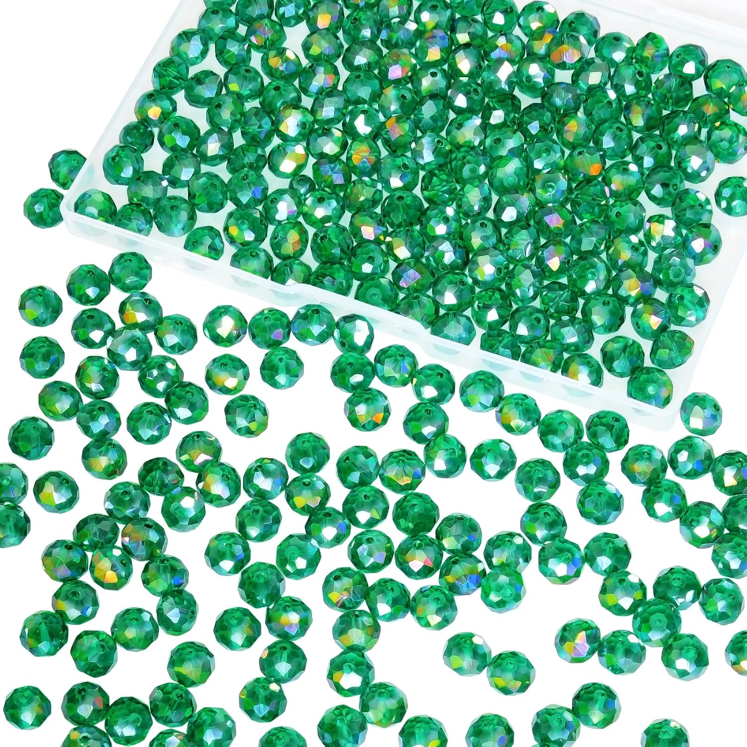 220Pcs 10mm Crystal Glass Beads for Jewelry Making Beads for Bracelets Necklace Pendants Making Supplies(Malachite Green)